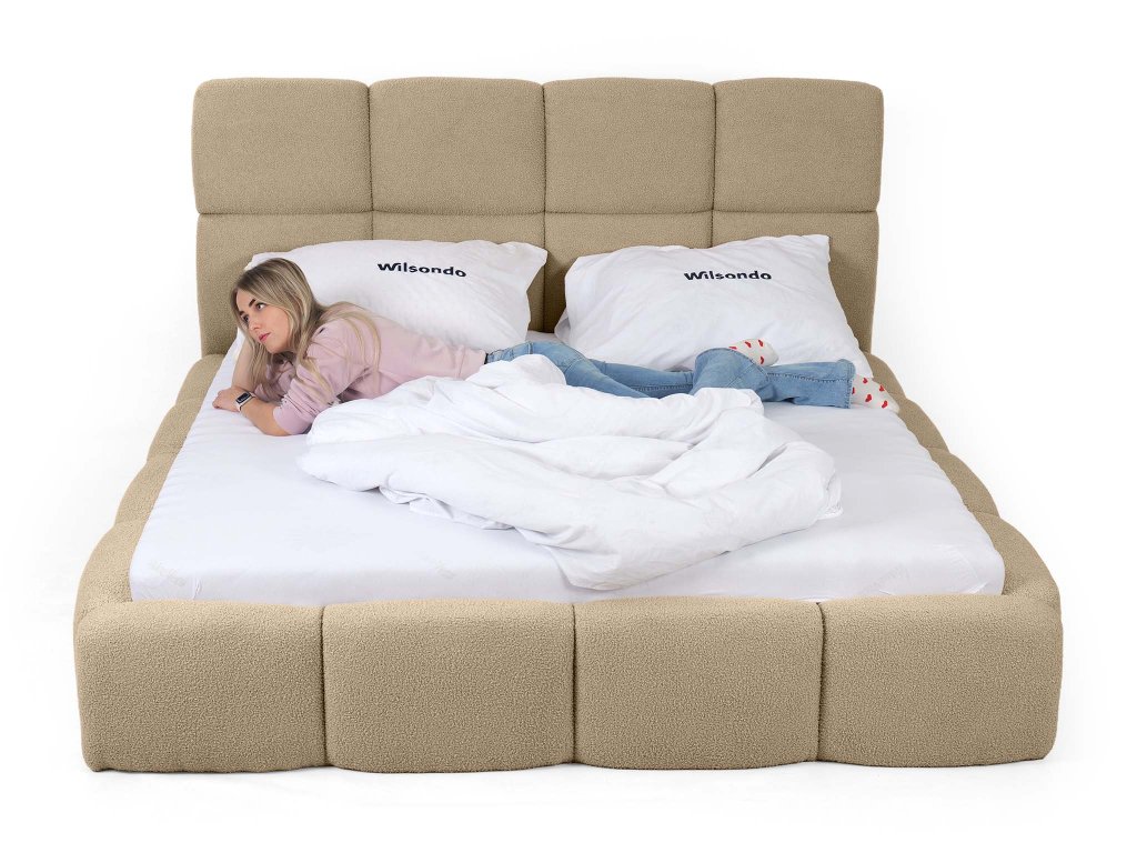 Látka Quelle zaujme svojou jemnou buklé textúrou, ktorá pripomína mäkké baránkové vlákno. Béžový odtieň dodáva spálni pocit čistoty, svetlosti a moderného luxusu. Materiál je odolný voči oderu, no zároveň mimoriadne mäkký, hrejivý a príjemný na dotyk. Vďaka svojej kvalite a elegantnému vzhľadu dodáva čalúnenej posteli Deriva 180×200 výnimočný charakter a mení ju na dominantný prvok spálne, ktorý spája krásu, pohodlie a trvácnosť.