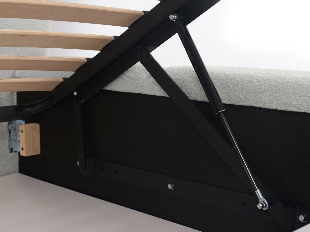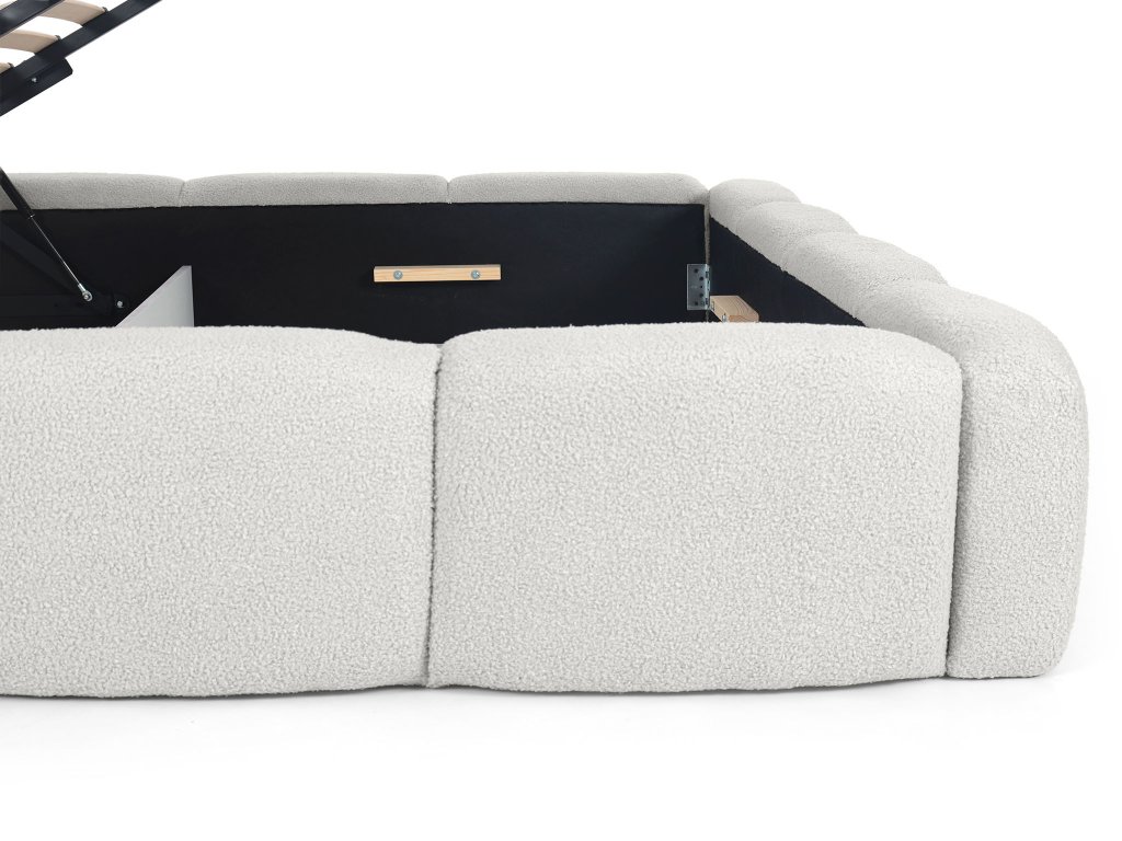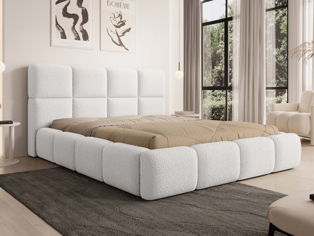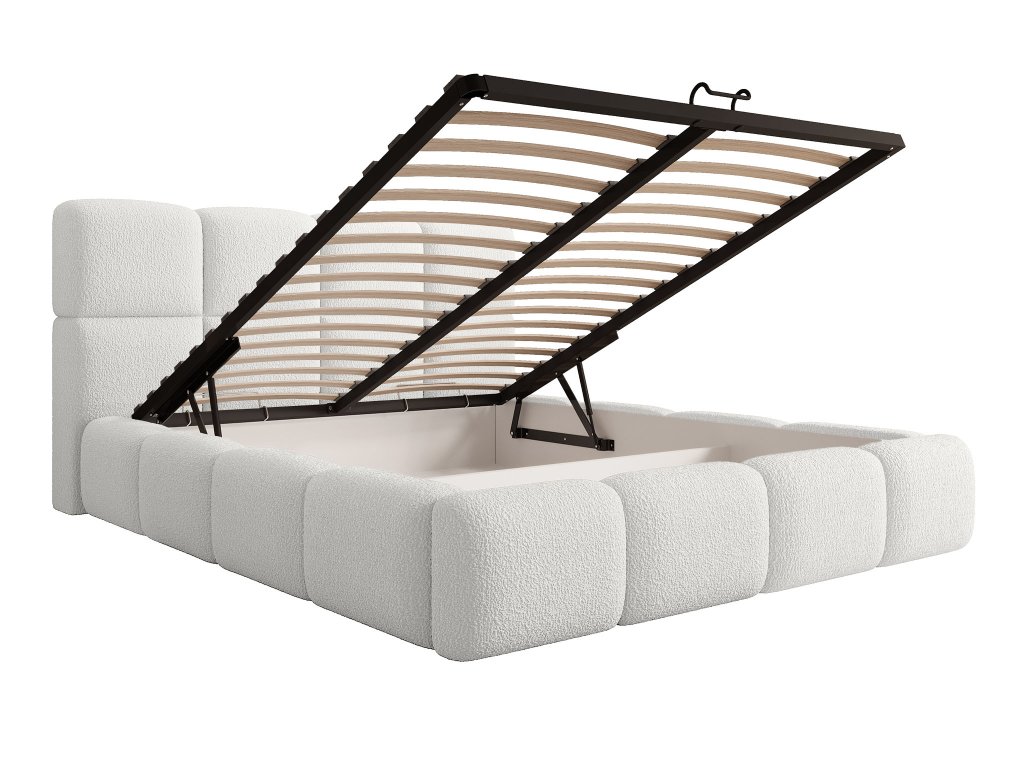 Manželská posteľ Deriva 180×200 v bielej buklé látke prináša do vašej spálne dokonalé spojenie elegancie, komfortu a praktickosti. Mäkké čalúnené čelo poskytuje pohodlné opretie pri čítaní či relaxe, zatiaľ čo jemne oblé línie pôsobia vzdušne a nadčasovo. Pod kvalitným lamelovým roštom sa ukrýva priestranný úložný priestor, ideálny na uloženie posteľnej bielizne, prikrývok alebo sezónneho oblečenia. Stabilná kovová konštrukcia zaručuje dlhú životnosť a pevnosť, vďaka čomu je táto čalúnená posteľ nielen krásna, ale aj spoľahlivá. Biela manželská posteľ Deriva opticky zväčší priestor, rozjasní interiér a vynikne v moderných aj klasických spálňach. Je ideálnou voľbou pre tých, ktorí hľadajú pohodlnú posteľ s úložným priestorom v štýlovom prevedení.