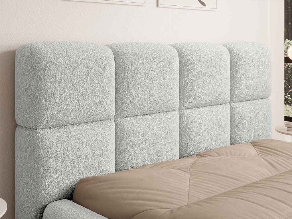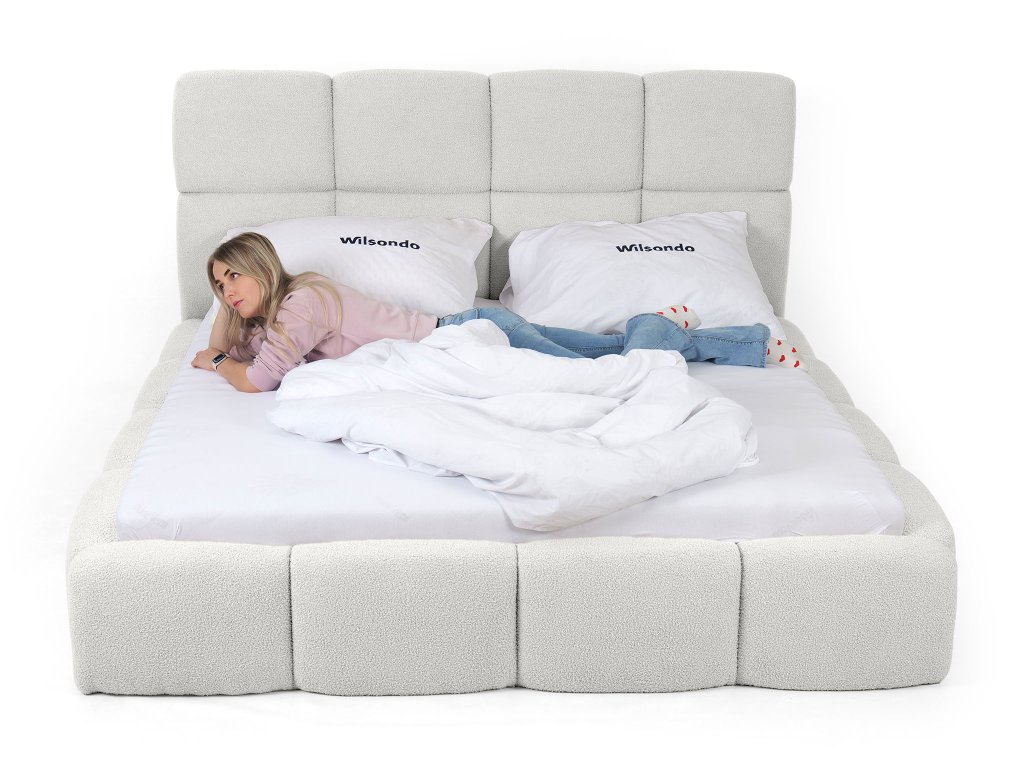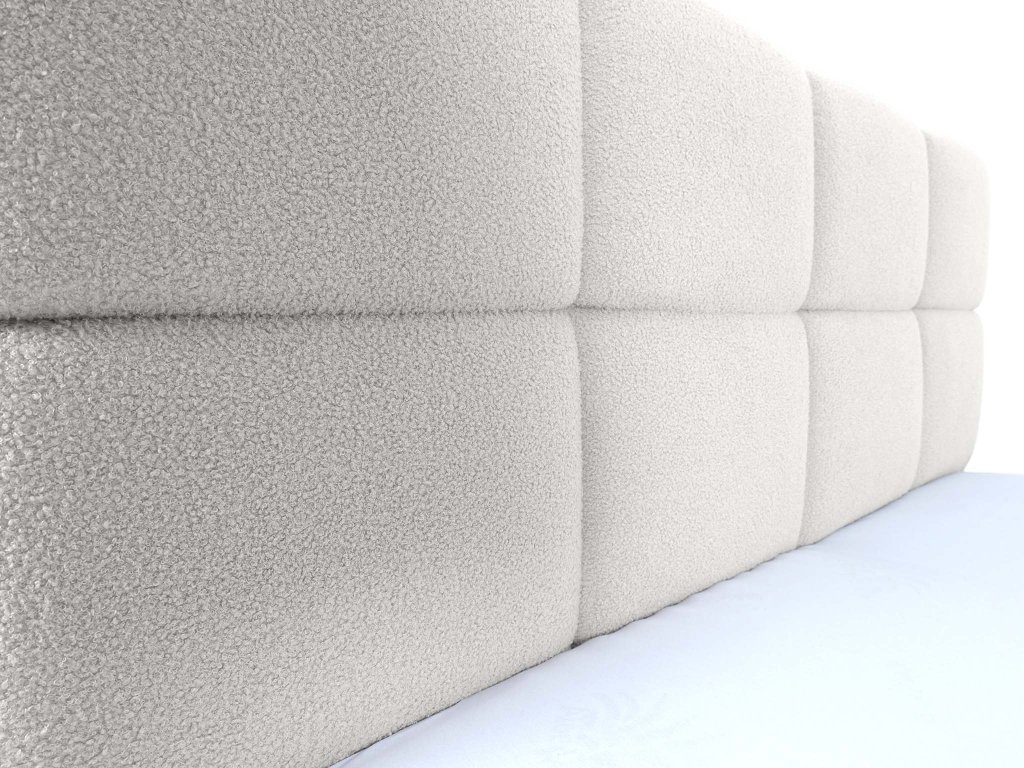 Látka Quelle zaujme svojou jemnou buklé textúrou, ktorá pripomína mäkké baránkové vlákno. Biely odtieň dodáva spálni pocit čistoty, svetlosti a moderného luxusu. Materiál je odolný voči oderu, no zároveň mimoriadne mäkký, hrejivý a príjemný na dotyk. Vďaka svojej kvalite a elegantnému vzhľadu dodáva čalúnenej posteli Deriva 180×200 výnimočný charakter a mení ju na dominantný prvok spálne, ktorý spája krásu, pohodlie a trvácnosť.