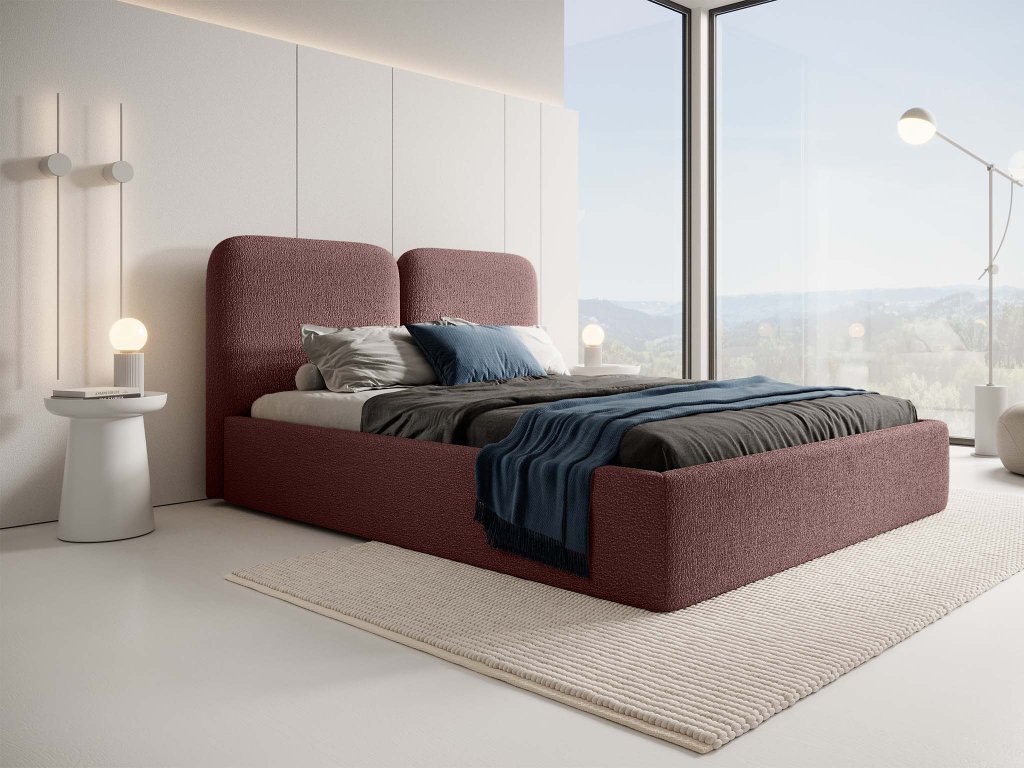 Posteľ s úložným priestorom Desio Slim v tehlovej farbe zaujme na prvý pohľad svojou originálnou farebnosťou a jemne zaoblenými tvarmi. Teplý odtieň pôsobí príjemne a útulne, vnáša do interiéru energiu a štipku moderného luxusu. Dvojité prešívané čelo vytvára elegantný kontrast k jednoduchému rámu a stáva sa vizuálnym stredobodom spálne. Tento model dokonale zapadne do interiérov, ktoré hľadajú rovnováhu medzi minimalizmom a osobitým charakterom.