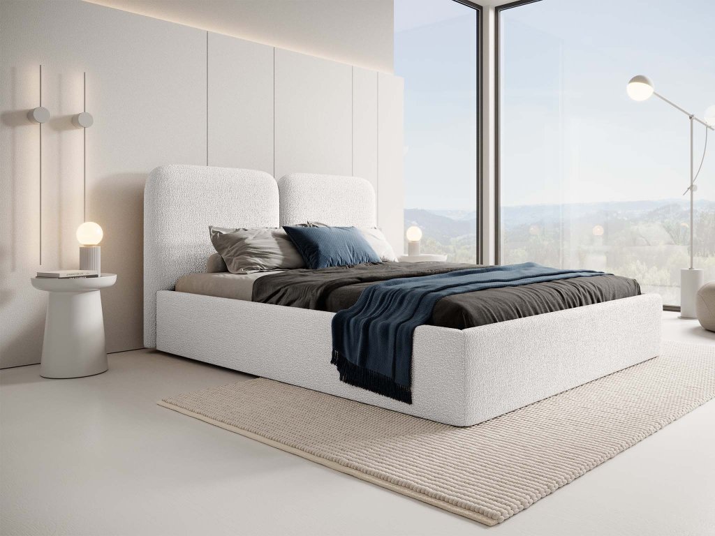 Manželská čalúnená posteľ s úložným priestorom Desio Slim 180x200 - smotanová