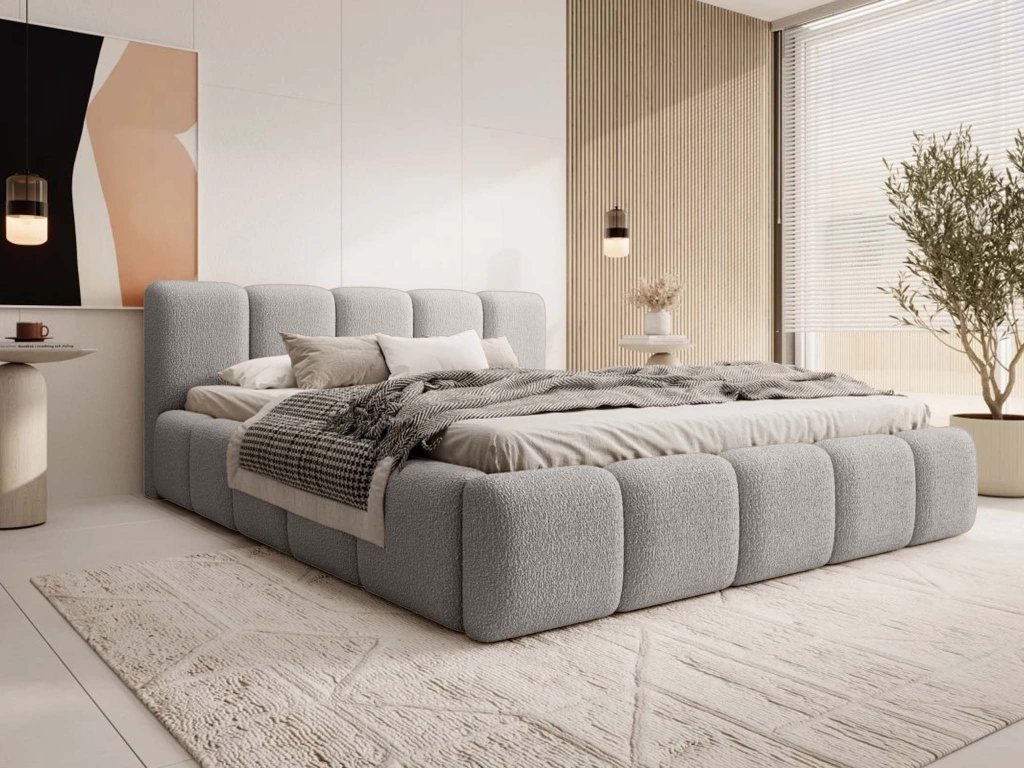 Posteľ Feros 180×200 cm v béžovej buklé látke vnáša do spálne harmóniu, štýl a pohodlie. Elegantné, jemne zaoblené línie a vysoké čalúnené čelo dodávajú interiéru útulnosť a poskytujú ideálne miesto na relax.