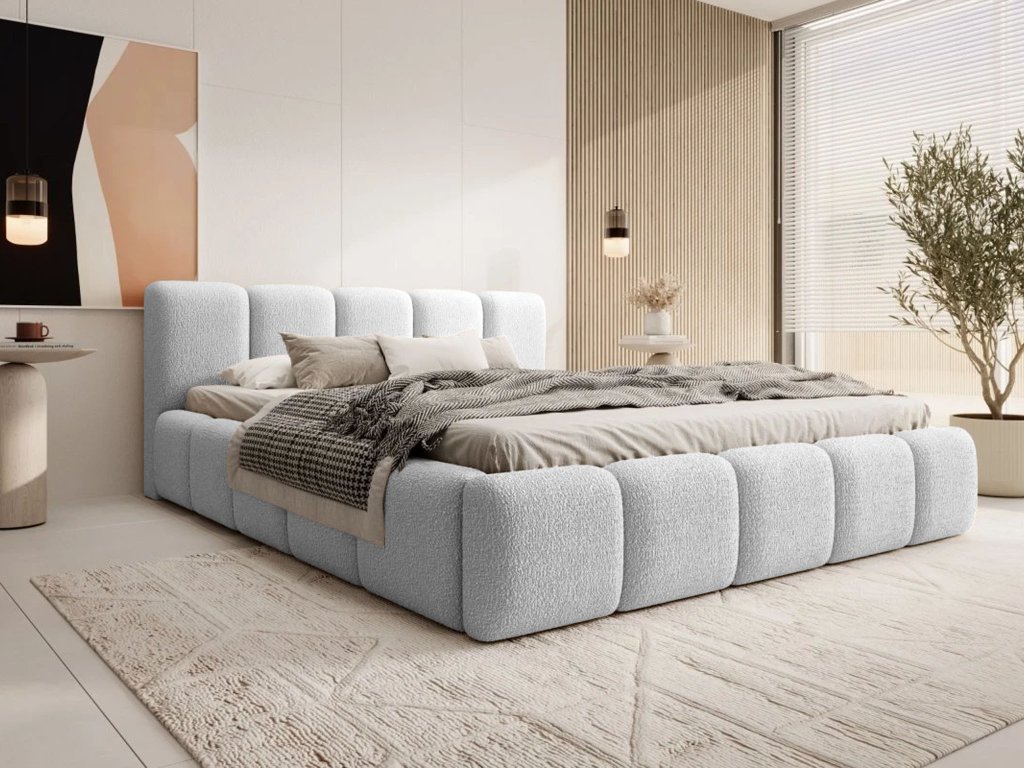 Posteľ Feros 180×200 cm v elegantnej sivej buklé látke prináša do spálne štýl, harmóniu a maximálne pohodlie. Jemne zaoblené línie a vysoké čalúnené čelo vytvárajú útulné a nadčasové miesto na oddych aj čítanie.