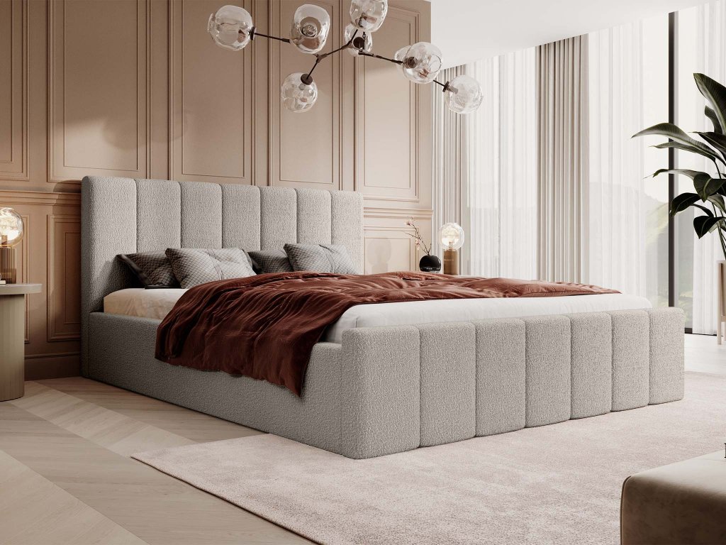 Béžová verzia manželskej postele 140x200 Flavio Slim pôsobí mimoriadne harmonicky a vnáša do spálne pocit pokoja a ľahkosti. Široké čalúnené čelo s jemným vertikálnym prešívaním je navrhnuté tak, aby pôsobilo luxusne, ale zároveň zaručovalo pohodlie pri každodennom používaní. Stabilná konštrukcia postele spája pevné materiály a precízne spracovanie, vďaka čomu tvorí spoľahlivý základ aj pre vyššie matrace. Moderný tvar bez nožičiek dodáva celku kompaktný vzhľad, ktorý výborne funguje v menších aj väčších spálňach.