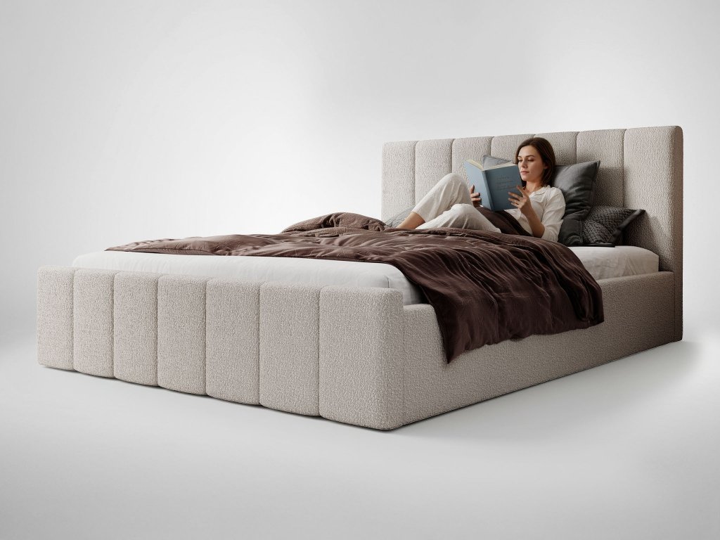 Manželská čalúnená posteľ s úložným priestorom Flavio Slim 140x200 - béžová