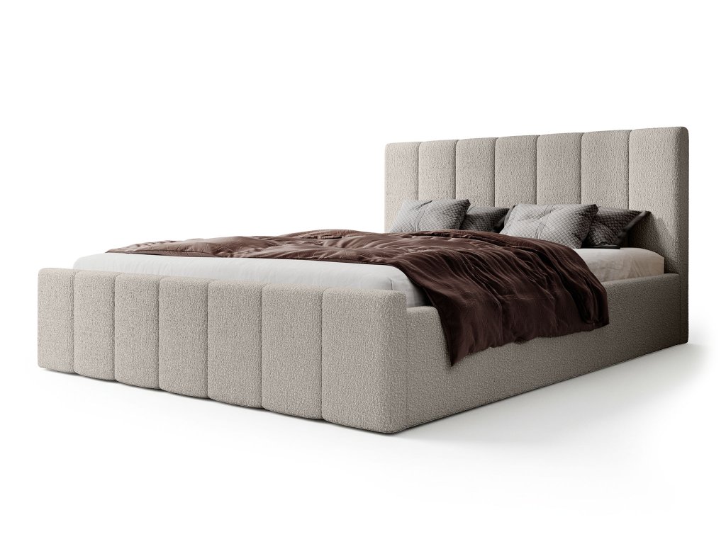 Béžová posteľ 180x200 Flavio Slim ponúka veľkorysú plochu na spanie, ktorá premení vašu spálňu na luxusný apartmán. Jej vzhľad je definovaný jemným vertikálnym prešívaním, ktoré vizuálne zvyšuje dominantné čelo postele, poskytujúc tak ideálnu oporu pri večernom čítaní. Pevnosť konštrukcie je zabezpečená osvedčenou kombináciou kvalitnej bielej laminovanej dosky a drevených prvkov, čo zaručuje stabilitu aj pri najväčšom zaťažení. Najväčšou pridanou hodnotou je obrovský, diskrétny úložný priestor, prístupný vďaka špičkovému kovovému roštu vybavenému plynovými piestami, ktoré zaručujú ľahké a bezpečné zdvíhanie.
