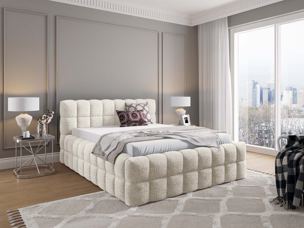 Manželská čalúnená posteľ s úložným priestorom Lagos 180x200 - krémová