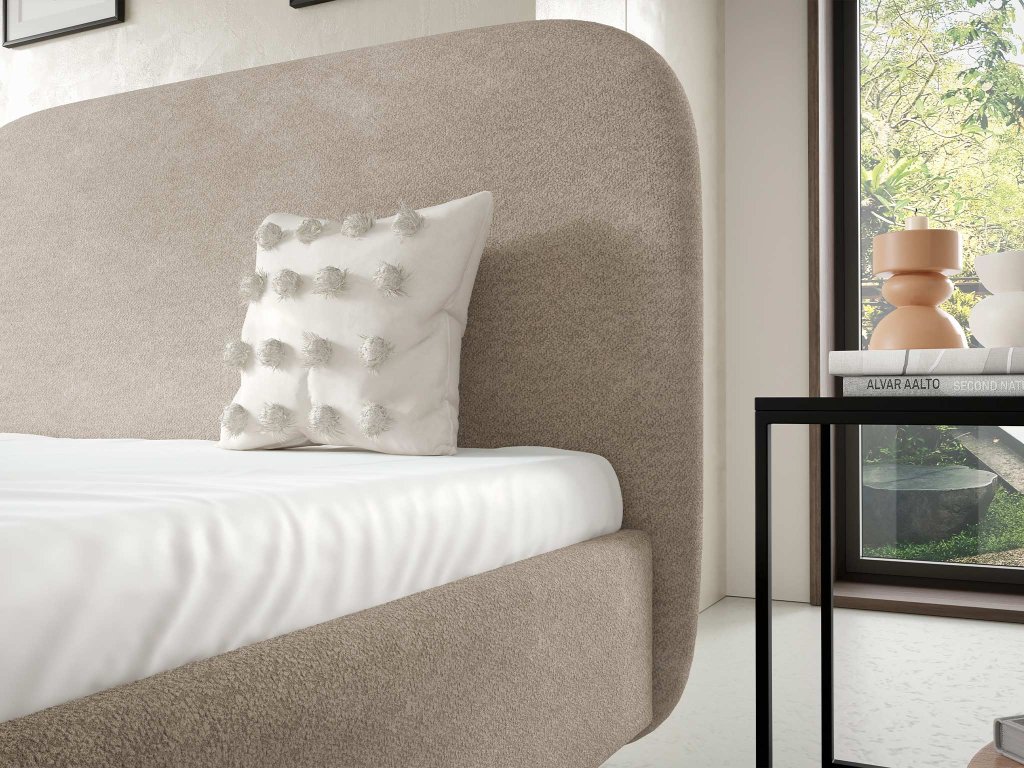 Vizuálnou dominantou postele je vysoké, mäkko čalúnené čelo, ktoré zaujme svojím zaobleným tvarom a precíznym spracovaním. Jeho oblé línie dodávajú celej posteli jemnosť a harmonický vzhľad, zatiaľ čo pevná konštrukcia ponúka komfortnú oporu pri čítaní, relaxe či večernom oddychu. Béžová látka Abriamo 02 pôsobí elegantne a nadčasovo, je príjemná na dotyk a zároveň odolná voči každodennému používaniu – čo zaručuje dlhú životnosť a jednoduchú údržbu.