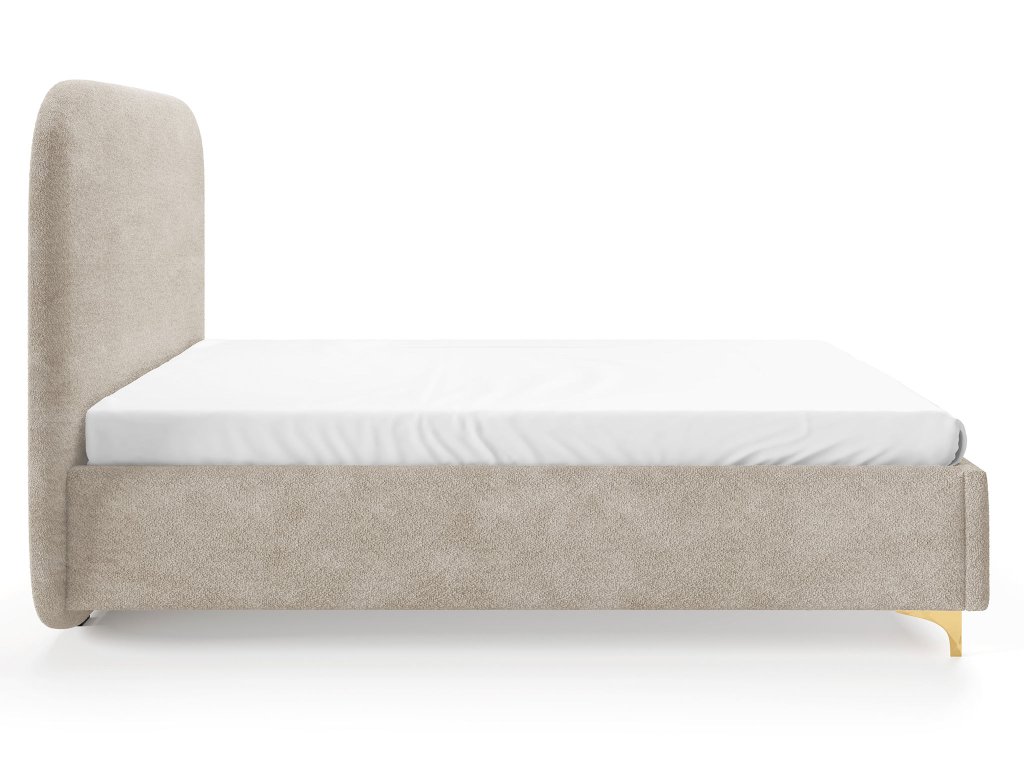 Stabilitu a vzdušnosť konštrukcie zabezpečujú zlaté kovové nohy, ktoré zároveň podčiarkujú celkový moderný a štýlový výraz postele. Pod lôžkom sa nachádza priestranný úložný priestor, do ktorého sa pohodlne dostaneš vďaka silnému plynovému piestu (1000 N) a praktickému textilnému úchytu.