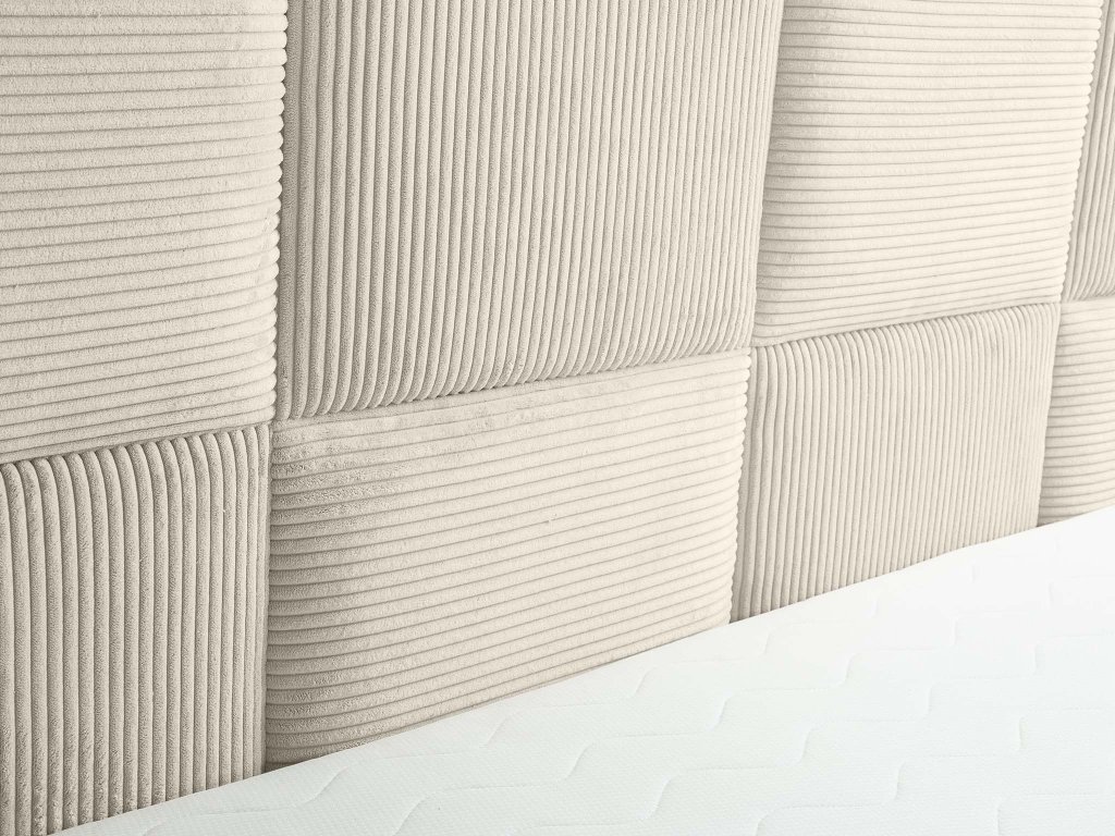 Pri výbere postele zohráva dôležitú úlohu aj použitý materiál. Povrch postele Sofira je potiahnutý čalúnnickou látkou Poso, ktorá sa vyznačuje jemnou menčestrovou štruktúrou a príjemným povrchom na dotyk. Materiál je navrhnutý tak, aby bol odolný voči oderu, žmolkovaniu aj svetlu, vďaka čomu si čalúnená manželská posteľ zachová svoj elegantný vzhľad aj pri dlhodobom používaní. Smotanová farba zároveň pôsobí nadčasovo a jednoducho sa kombinuje s rôznymi štýlmi zariadenia spálne.