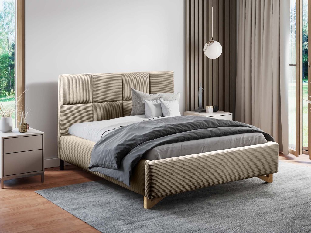 Povrch postele je potiahnutý látkou Poso, ktorá je odolná voči oderu, žmolkovaniu aj svetlu. Jemná menčestrová štruktúra látky dodáva čalúnenej manželskej posteli Sofira štýlový a zároveň útulný vzhľad. Tmavobéžová farba pôsobí nadčasovo a ľahko sa kombinuje s rôznymi štýlmi interiéru.