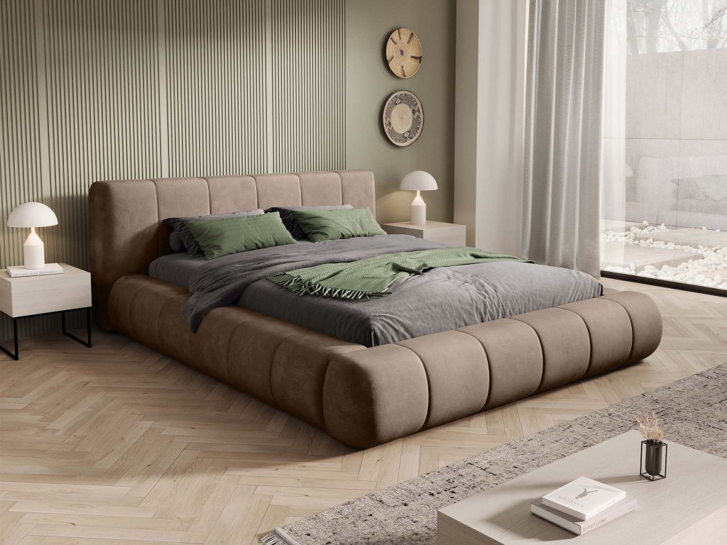 Čalúnenie postele je vytvorené z kvalitnej látky Velluto, ktorá zaujme svojou jemnou, až zamatovou textúrou a decentným leskom. Materiál je mimoriadne príjemný na dotyk, odolný voči každodennému opotrebovaniu a zároveň nenáročný na bežnú starostlivosť. Velluto dodáva posteli luxusný, no stále útulný vzhľad a krásne podčiarkuje mäkké, oblúkové línie konštrukcie. Spodnú časť postele tvorí funkčná textília typu Fibertex, ktorá zlepšuje cirkuláciu vzduchu a uľahčuje údržbu celej postele. Dno sa dá jednoducho odopnúť, čo umožňuje pohodlné vysávanie a udržanie čistoty aj na menej dostupných miestach.