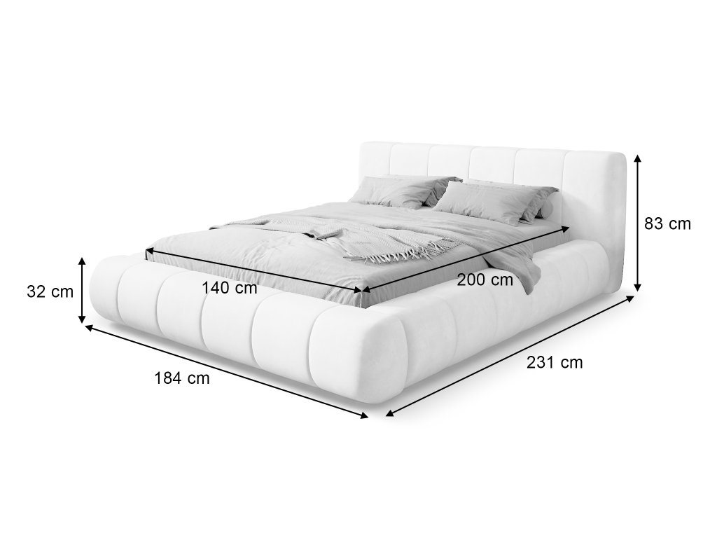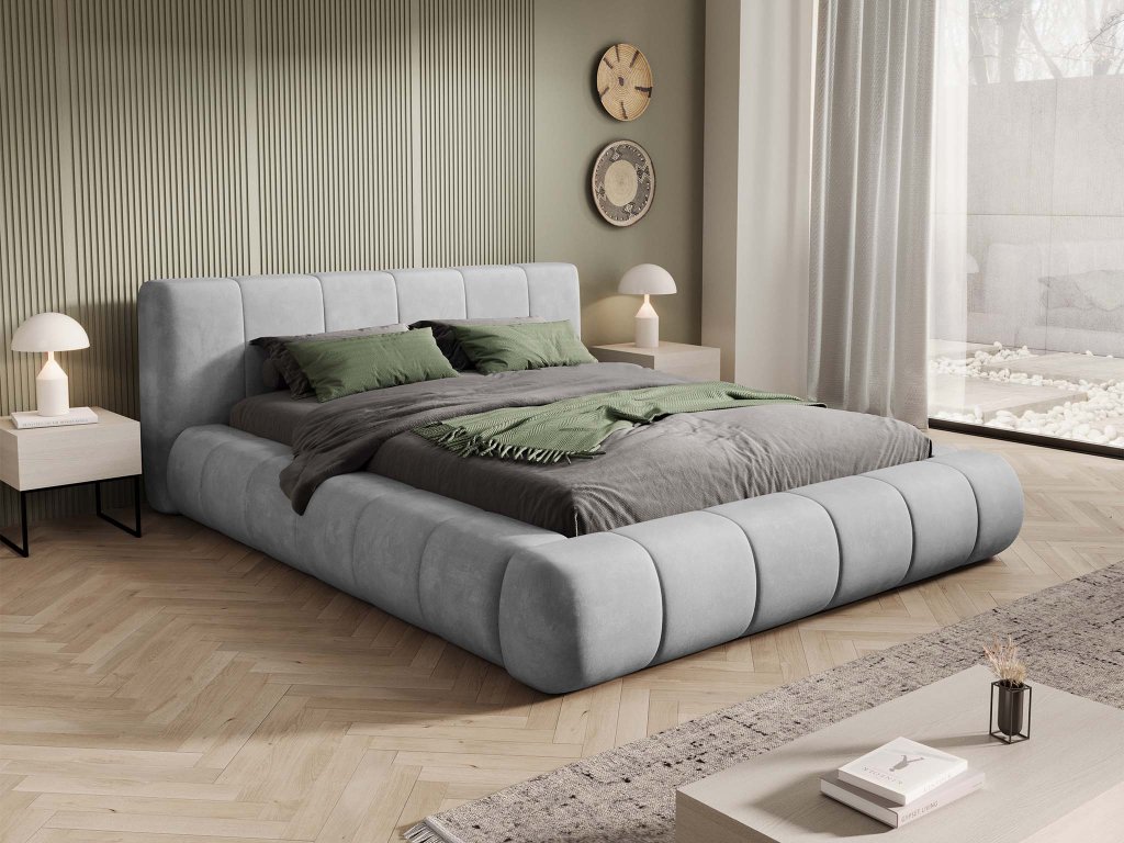 Čalúnenie postele je vytvorené z kvalitnej látky Velluto, ktorá zaujme svojou jemnou, až zamatovou textúrou a decentným leskom. Materiál je mimoriadne príjemný na dotyk, odolný voči každodennému opotrebovaniu a zároveň nenáročný na bežnú starostlivosť. Velluto dodáva posteli luxusný, no stále útulný vzhľad a krásne podčiarkuje mäkké, oblúkové línie konštrukcie. Spodnú časť postele tvorí funkčná textília typu Fibertex, ktorá zlepšuje cirkuláciu vzduchu a uľahčuje údržbu celej postele. Dno sa dá jednoducho odopnúť, čo umožňuje pohodlné vysávanie a udržanie čistoty aj na menej dostupných miestach.
