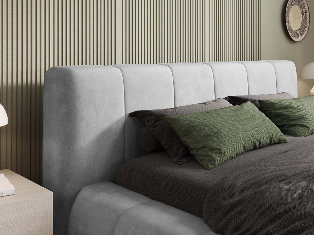 Manželská posteľ Viglo v jemnom svetlosivom odtieni prináša dokonale vyváženú kombináciu súčasného dizajnu, výnimočného pohodlia a praktických detailov, ktoré oceníte každý deň. Jej výrazné, mäkko čalúnené línie okamžite upútajú pozornosť a stanú sa prirodzenou dominantou každej modernej spálne. Svetlosivá farba pôsobí sviežo, elegantne a ľahko sa začlení do rôznych štýlov zariadenia. Hlavným vizuálnym prvkom je vysoké, bohato prešívané čelo, ktoré ponúka stabilnú oporu pri večernom čítaní aj oddychu po náročnom dni. Spolu s masívnymi bočnicami tvorí jednotný, harmonický celok, ktorý vyžaruje luxus, komfort a útulnú atmosféru. Posteľ Viglo tak nie je len kus nábytku – je to stredobod spánku a relaxu, ktorý udáva tón celej miestnosti.