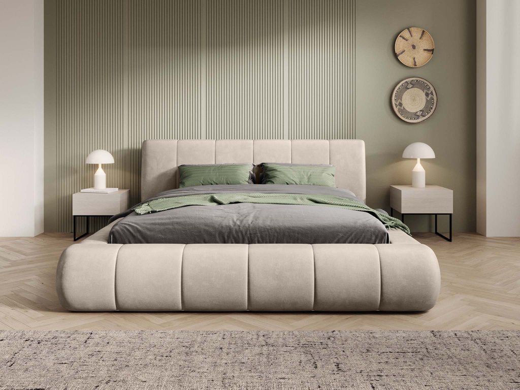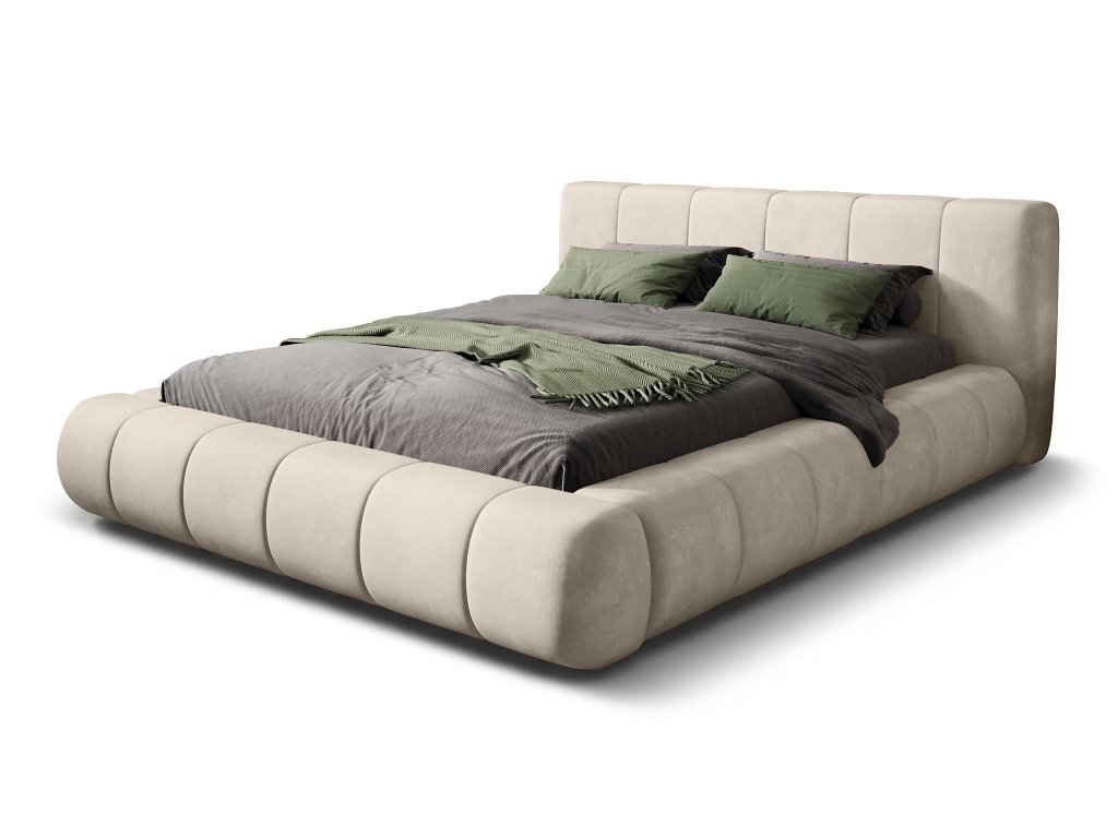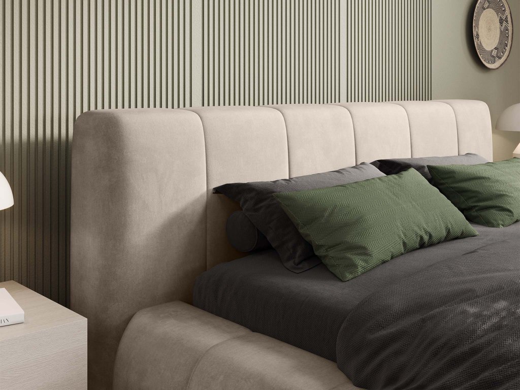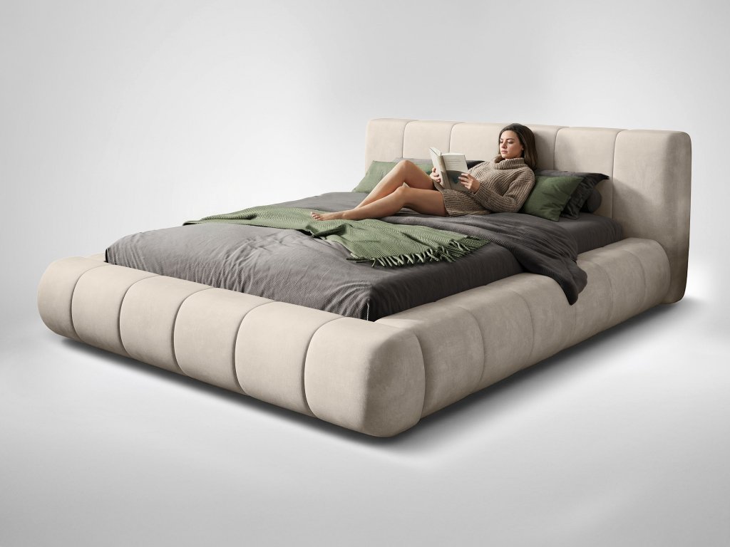 Čalúnenie postele je vytvorené z kvalitnej látky Velluto, ktorá zaujme svojou jemnou, až zamatovou textúrou a decentným leskom. Materiál je mimoriadne príjemný na dotyk, odolný voči každodennému opotrebovaniu a zároveň nenáročný na bežnú starostlivosť. Velluto dodáva posteli luxusný, no stále útulný vzhľad a krásne podčiarkuje mäkké, oblúkové línie konštrukcie. Spodnú časť postele tvorí funkčná textília typu Fibertex, ktorá zlepšuje cirkuláciu vzduchu a uľahčuje údržbu celej postele. Dno sa dá jednoducho odopnúť, čo umožňuje pohodlné vysávanie a udržanie čistoty aj na menej dostupných miestach.