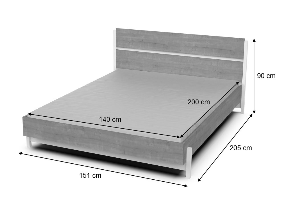 Manželská posteľ Draft 140x190/200 - dub/biela