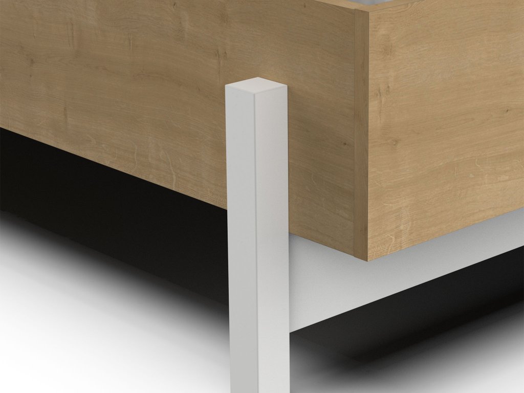 Rám postele je vyrobený z kvalitnej laminátovej dosky s hrúbkou 18 mm a zažehlenými hranami. Stabilitu zabezpečujú biele nohy ktoré podopierajú celú konštrukciu. Posteľ má ložnú plochu 160 × 200 cm, čím poskytuje dostatok priestoru pre dvoch. Vďaka premyslenému spracovaniu je vhodná aj do menších spálni, kde vynikne nielen svojim vzhľadom, ale aj praktickosťou.