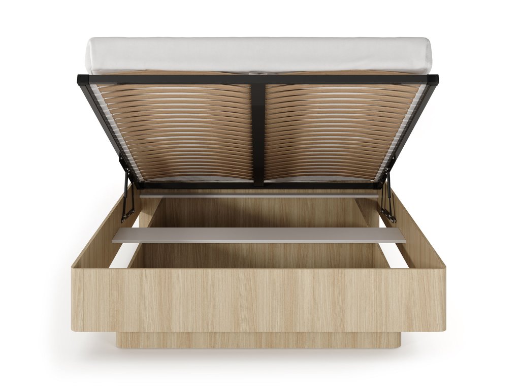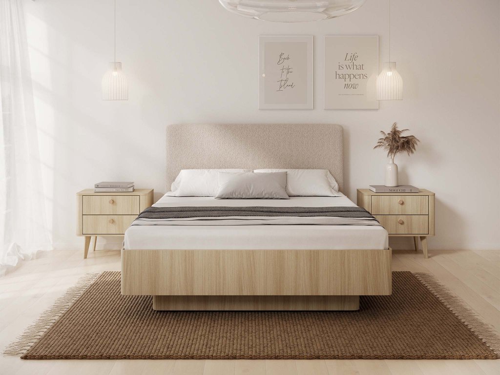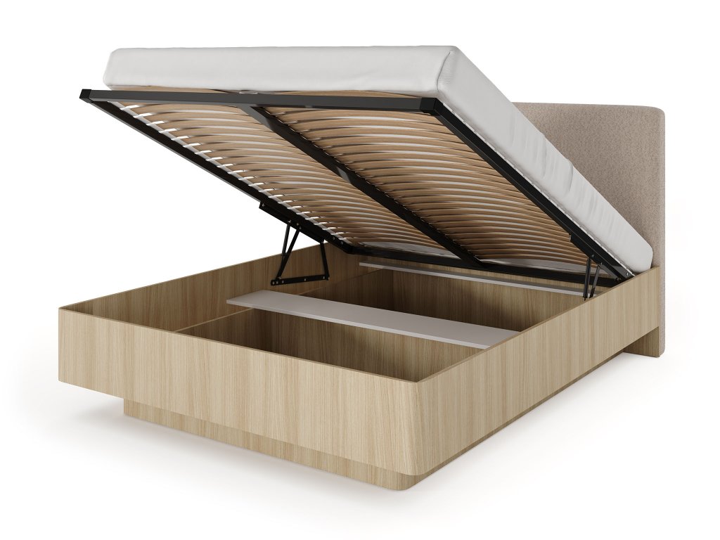 Manželská posteľ Viki upúta teplým dekorom dub barista a mäkkým čalúneným čelom, ktoré prinášajú do spálne útulnosť a elegantný charakter. Stabilná konštrukcia doplnená dreveným podstavcom pôsobí ľahko a nadčasovo. Praktický úložný priestor s pevým kovovým roštom, ktorý sa jednoducho vyklápa smerom nahor, poskytuje dostatok miesta na uloženie posteľnej bielizne, prikrývok či sezónnych doplnkov a uľahčuje udržiavanie poriadku v domácnosti.