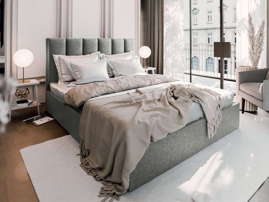 Olivová posteľ Lure 140x200 – nadčasový dizajn s praktickým úložným priestorom