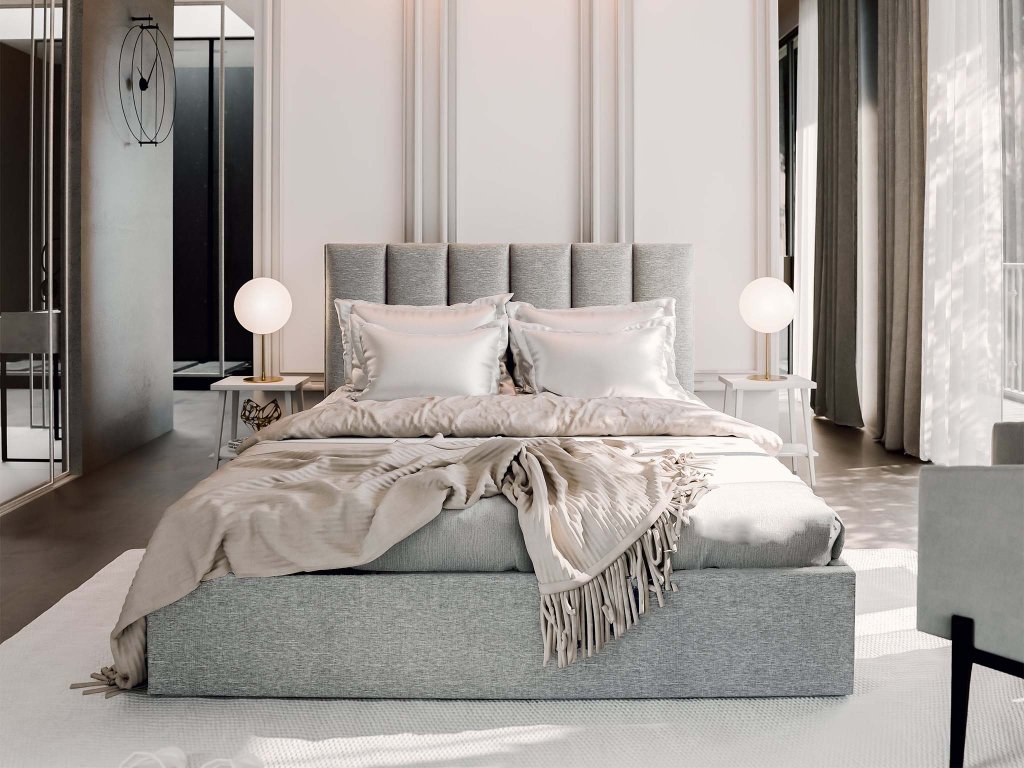 Model Lure v sivej farbe je stvorený pre tých, ktorí hľadajú kombináciu elegantného dizajnu a funkčnosti. Sivý poťah pôsobí univerzálne a ľahko sa kombinuje s rôznym štýlom interiéru – od minimalistického až po klasický. Stabilný rám z pevnej nábytkovej dosky a dreva dodáva posteli dlhú životnosť, zatiaľ čo vysoké čelo s prešívaním vytvára výrazný vizuálny prvok. K praktickým benefitom patrí úložný priestor otváraný pomocou zdvíhacieho mechanizmu, ideálny na lôžkoviny či sezónne doplnky.