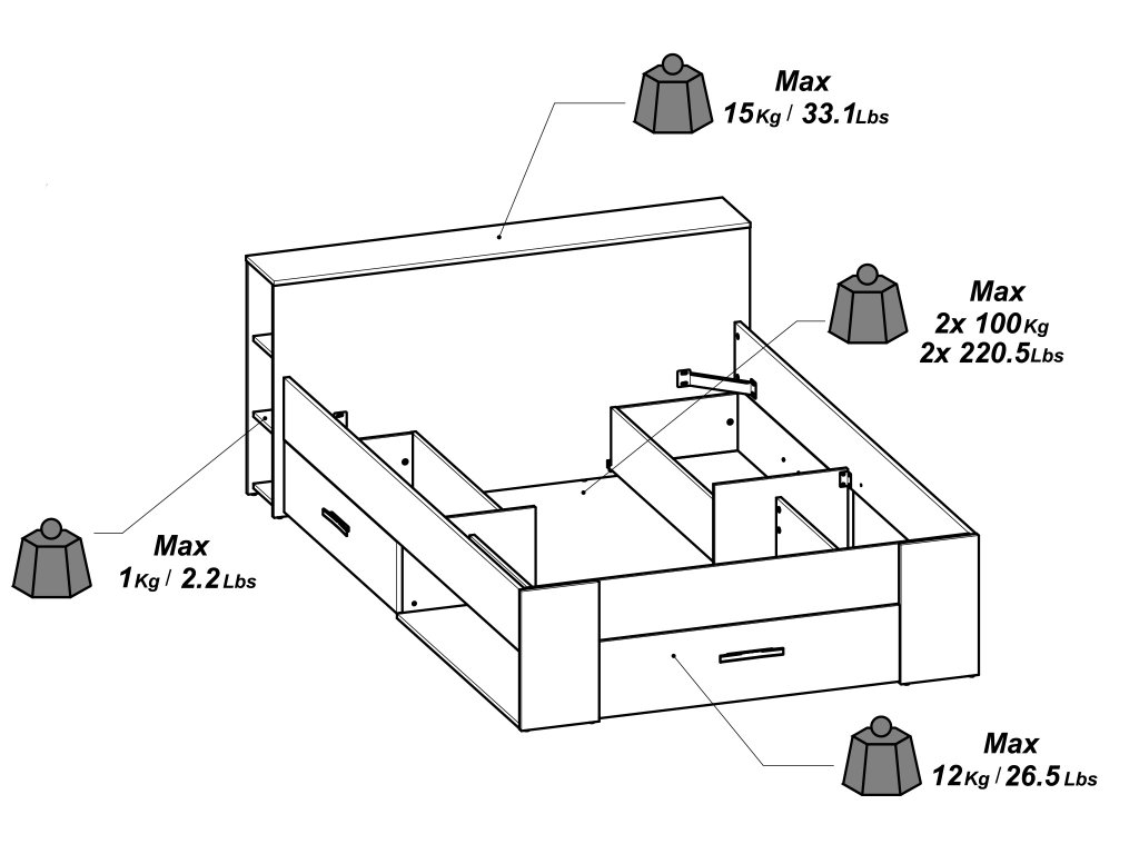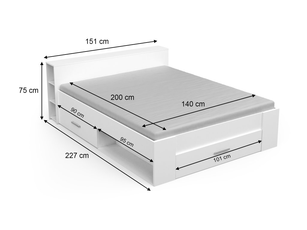 Posteľ je dodávaná spolu s tromi praktickými úložnými priestormi. Matrac, ani rošt nie sú súčasťou postele.