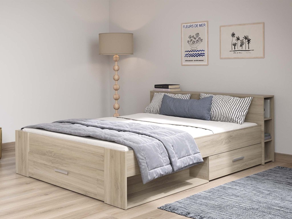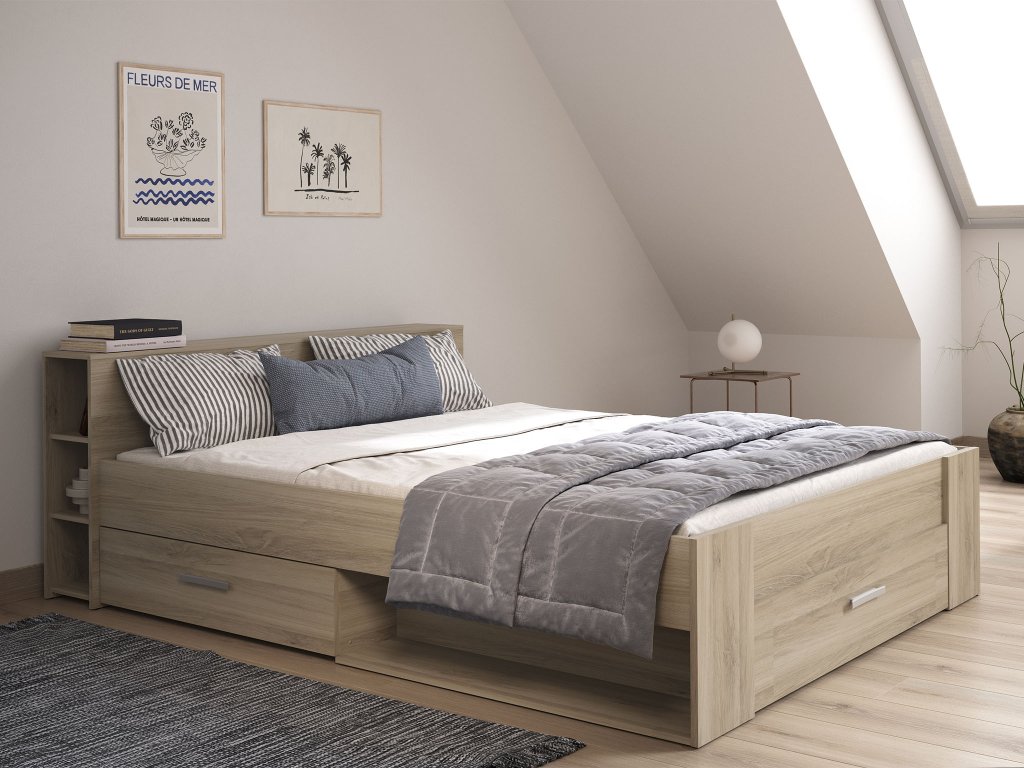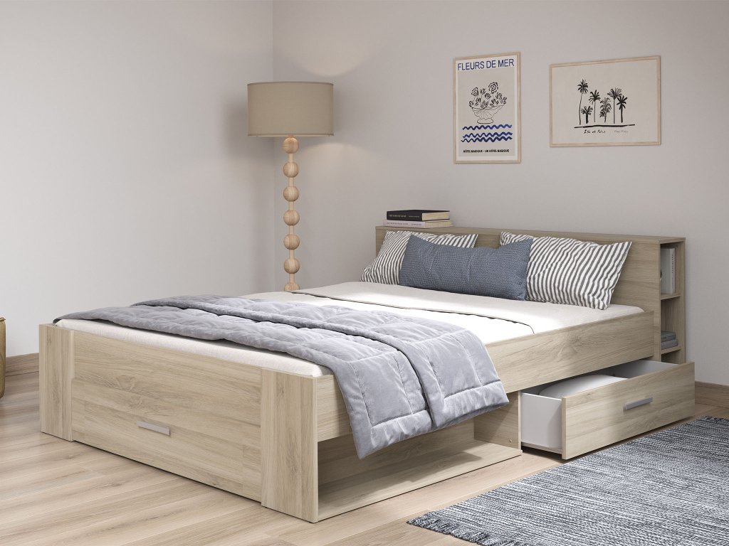 Manželská posteľ s úložným priestorom Pocket 160x200 - dub