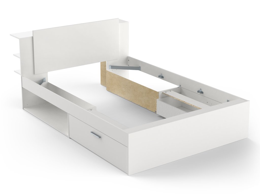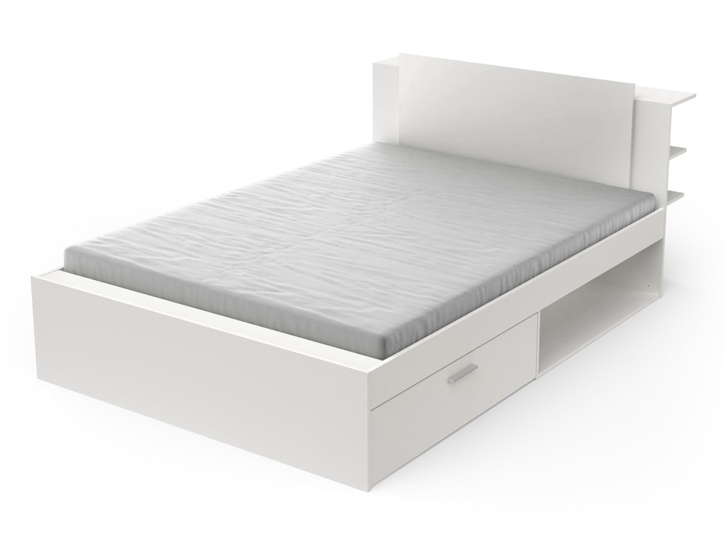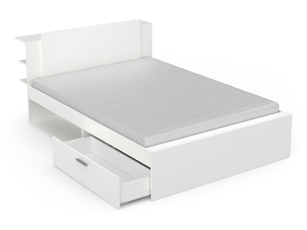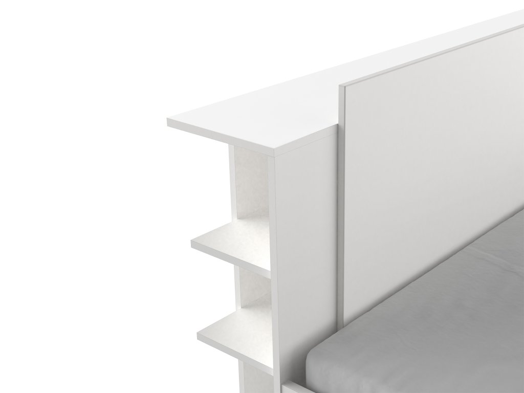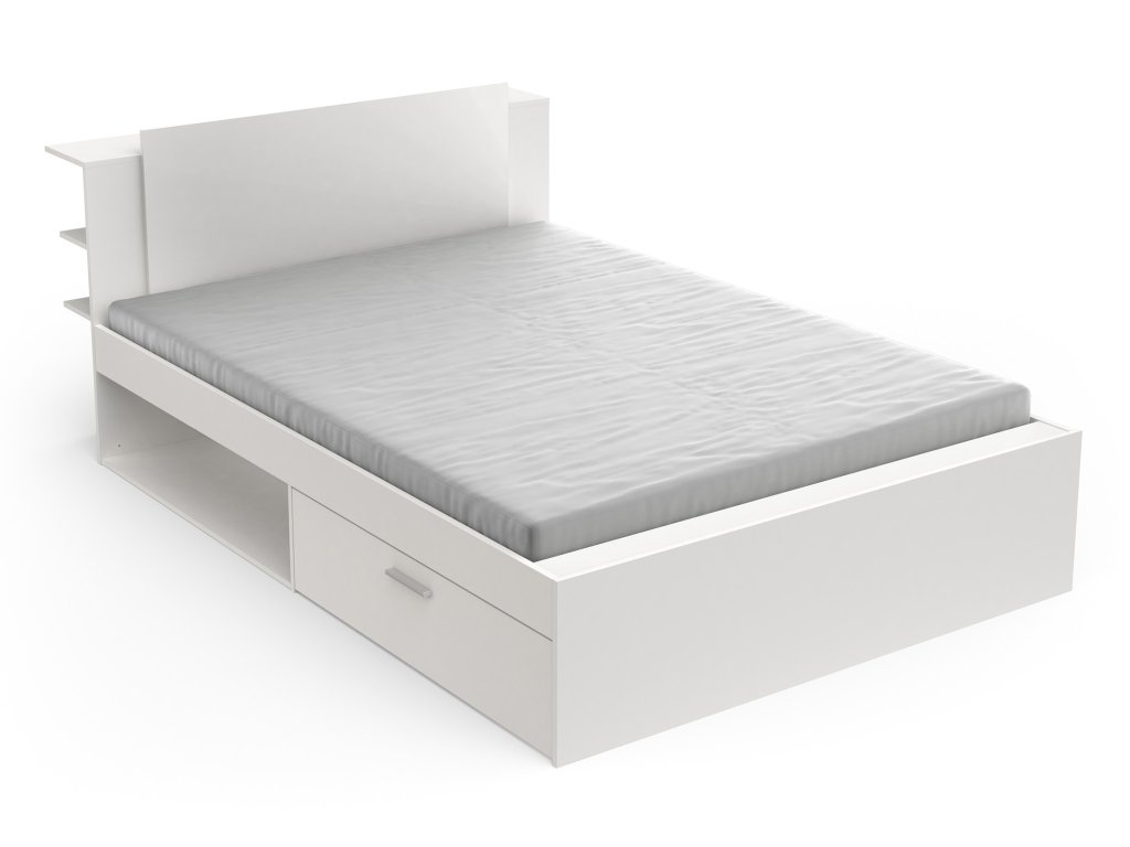 Zaujme nielen svojím minimalistickým vzhľadom, ale najmä štedrým úložným priestorom – v spodnej časti sa nachádzajú dve priestranné zásuvky a v záhlaví nájdeš praktickú vstavanú knižnicu. Ideálne na knihy, dekorácie, budík alebo všetko, čo chceš mať po ruke. Posteľ je vyrobená z kvalitného laminátu s hrúbkou 18 mm, s precíznou povrchovou úpravou a zažehlenými hranami. Vďaka svetlej farbe a vzdušnému dizajnu pôsobí posteľ ľahko a hodí sa do rôznych typov interiérov – od modernej spálne až po útulnú študentskú izbu.