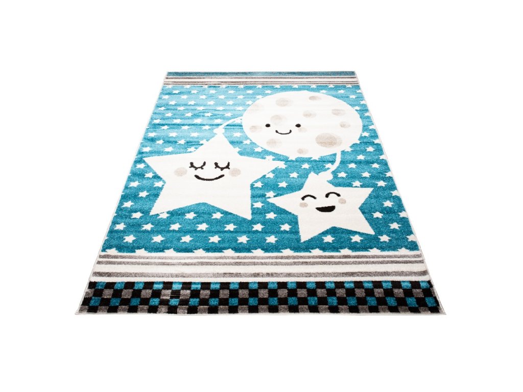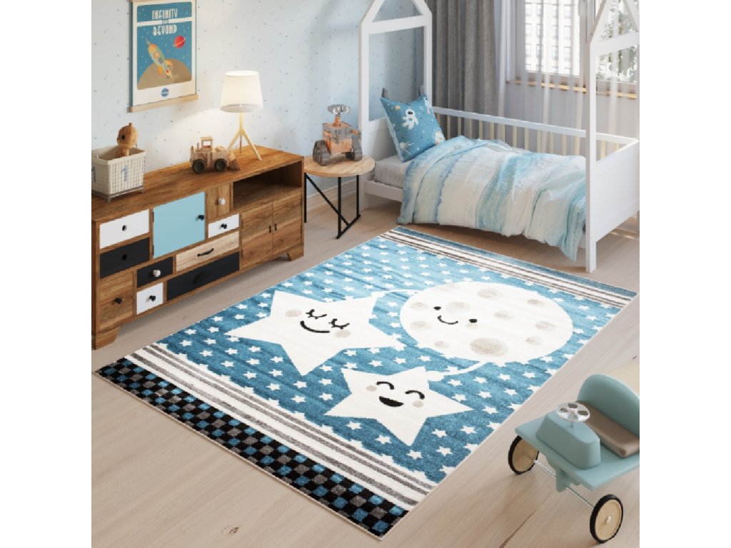Moderný koberec Stairy do detskej izby poteší každé dieťa a dodá mu pohodlie pri hraní. Detský koberec v modrej farbe s bielymi hviezdami očarí ako malých tak aj veľkých. Zaujímavý dizajn oživí celú detskú izbičku. Koberec je jednoduchý na údržbu a odolný voči vode. Potlač je z potravinárskych farieb chránených proti oteru.