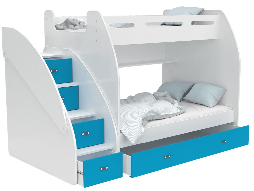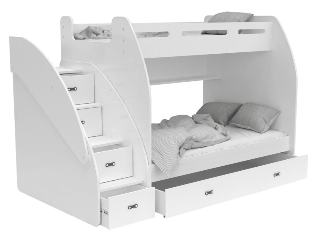 Aj keď deti často uprednostňujú postele v tvare domčekov, stanov či autíčok, táto poschodová posteľ sa bude bez zaváhania tešiť ich pozornosti hneď od prvého momentu, ako ju zbadajú. Spodné lôžko je mimoriadne útulné a z vrchného budú mať zase perfektný výhľad na celé dianie v detskej izbe. Spodné lôžko má nosnosť až 100 kg, preto sa na ňom môže bezpečne vyspať napríklad aj otecko alebo mamička a dať tak v noci pozor na malého spáča, ktorý sa bude zoznamovať s horným lôžkom. Posteľ máme skladom vo farbách ako biela, sivá, modrá, ružová alebo zelená.