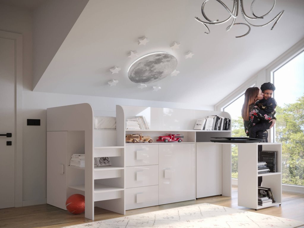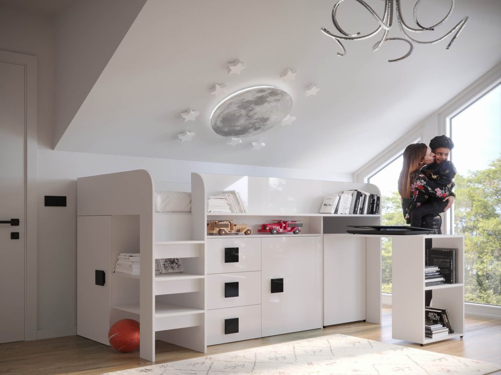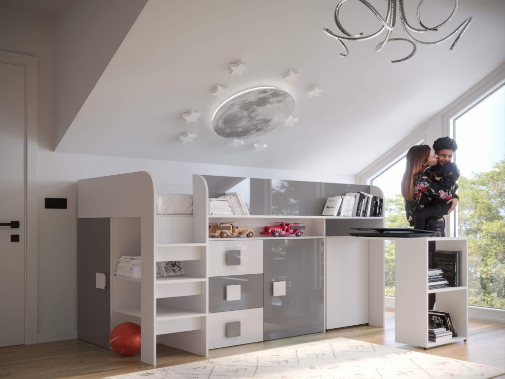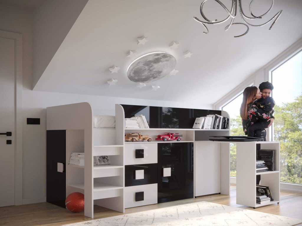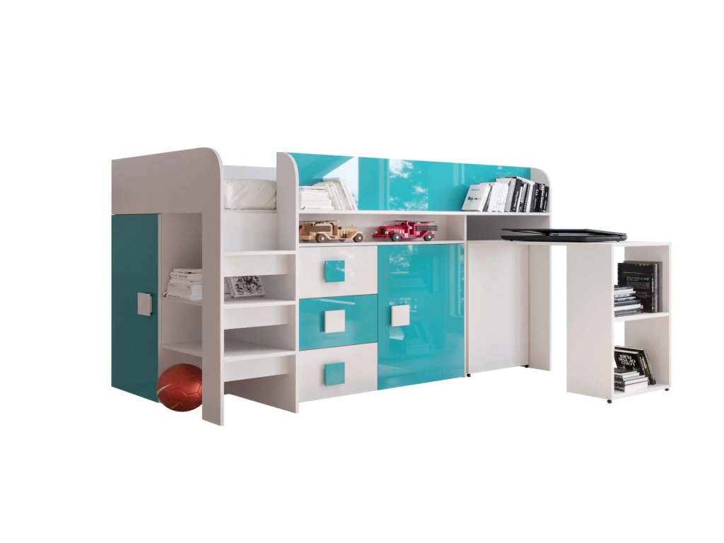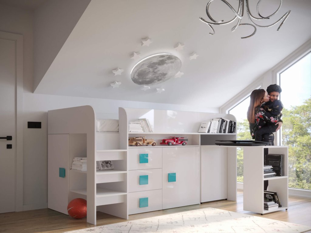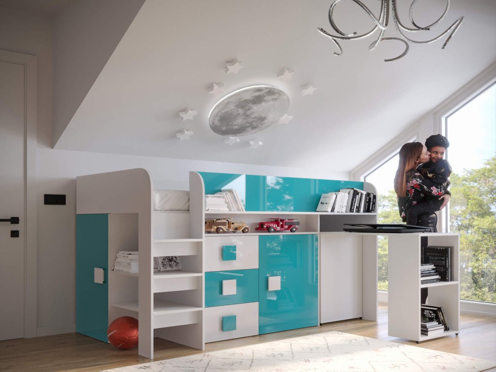 Ak v detskej izbe bojujete aj s nedostatkom úložného priestoru, no nestotožňujete sa s nákupom poschodovej postele (napríklad sa obávate o bezpečnosť menších detí vo vašej neprítomnosti), multifunkčná posteľ Toledo 1 je ideálnym riešením. Lôžko síce je vyvýšené, no nie vo výške, v ktorej sú lôžka dvojposchodových postelí a navyše je chránené zábranou. Do úložných priestorov pod posteľ sa zmestí náhradná posteľná bielizeň, oblečenie, knihy, hračky a všetky ďalšie poklady vašich ratolestí. Posteľ máme skladom až v piatich farebných variantoch. Biela, čierna a sivá potešia chlapcov aj dievčatá, no chlapci možno dajú prednosť modelu s tyrkysovými prvkami a dievčatá zase tej s ružovými.