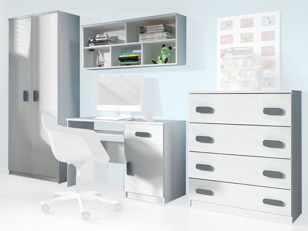 Nadčasový dizajn a štýlovosť sú charakteristickými znakmi tejto krásnej nábytkovej steny. Táto nábytková zostava so sivými úchytmi je vhodná do dievčenskej i chlapčenskej izby. Nábytok z kolekcie SVEND porastie s Vašim dieťaťom.