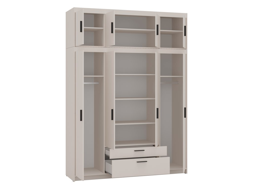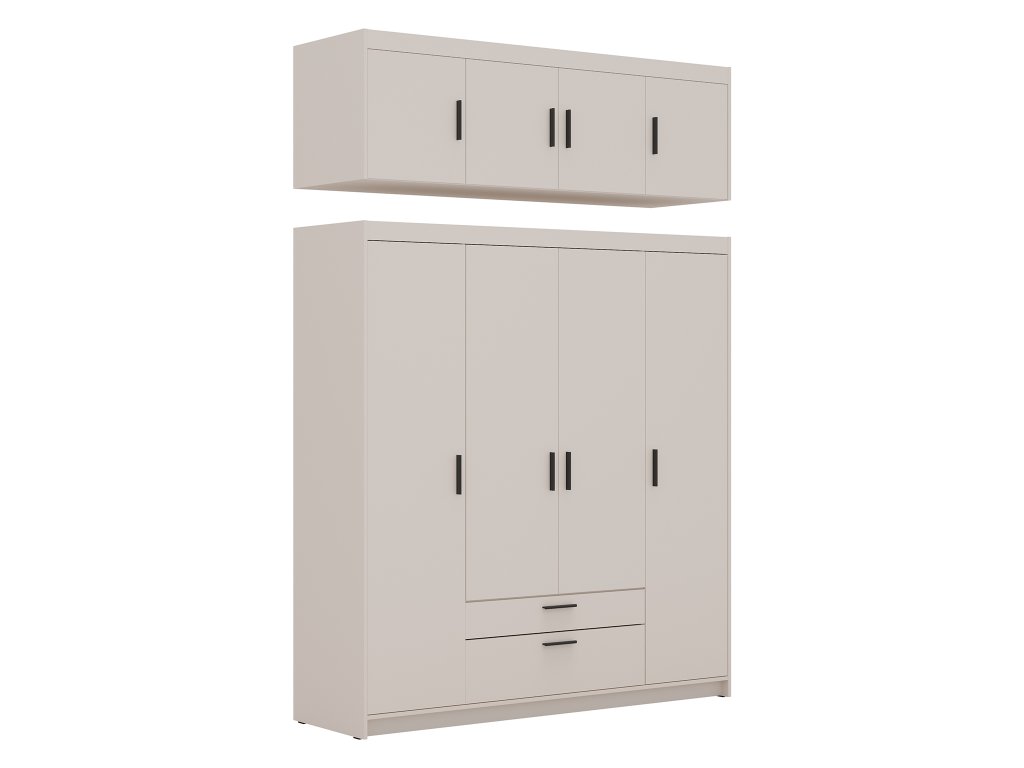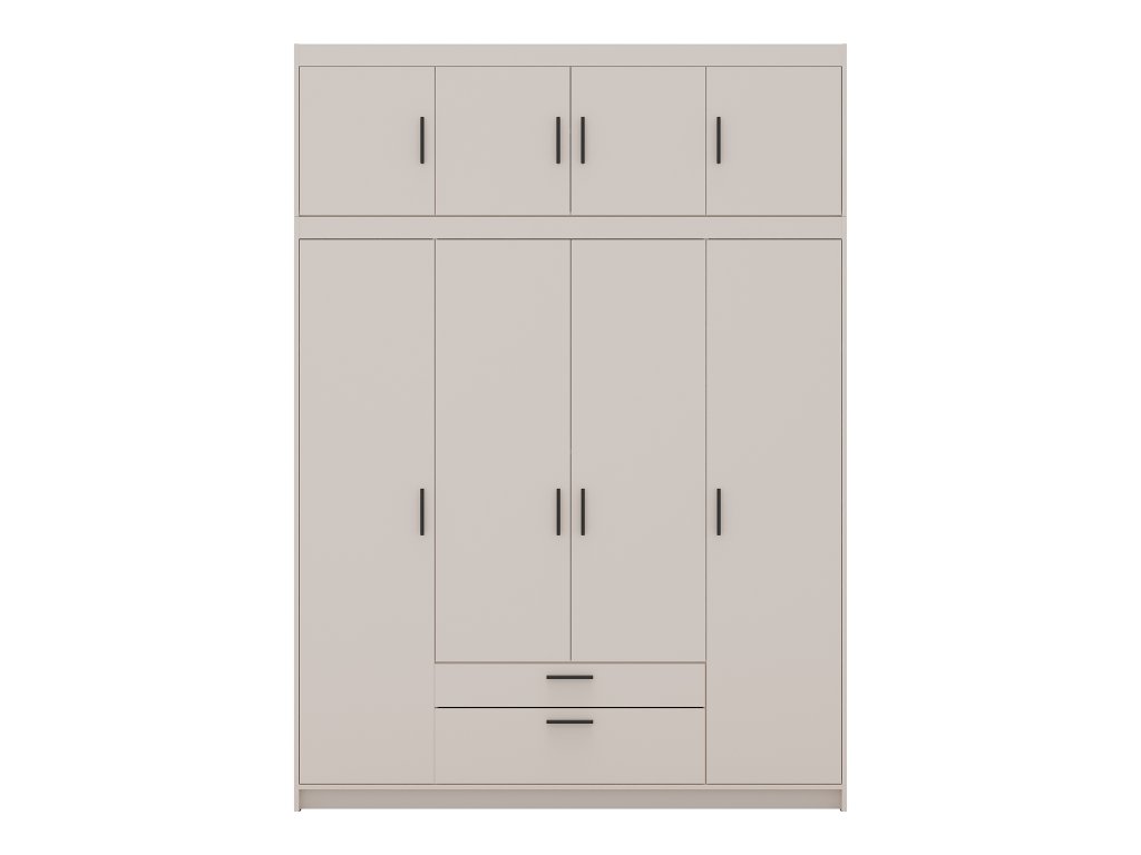 Nadstavec na širokú štvordverovú skriňu Elenas v pieskovom prevedení je praktickým riešením pre tých, ktorí chcú získať maximum úložného priestoru a zároveň zachovať jednotný vzhľad nábytku. Je ideálny do spálne aj predsiene, kde pomôže efektívne využiť priestor až po strop a udržať domácnosť prehľadne usporiadanú. Pieskový dekor pôsobí jemne, moderne a ľahko zapadne do rôznych štýlov interiéru. Vnútorné usporiadanie nadstavca je navrhnuté s dôrazom na praktickosť. Stredné dvierka ukrývajú jeden širší spoločný úložný priestor, ideálny na posteľnú bielizeň, sezónne oblečenie či väčšie predmety. Dvoje dvierka po stranách ponúkajú dva samostatné menšie úložné priestory, ktoré sú vhodné na prehľadné uloženie doplnkov alebo menej používaných vecí. Korpus z kvalitnej laminovanej dosky s melamínovými hranami zabezpečuje pevnú konštrukciu a dlhú životnosť, zatiaľ čo plastové úchytky umožňujú pohodlné a jednoduché otváranie.