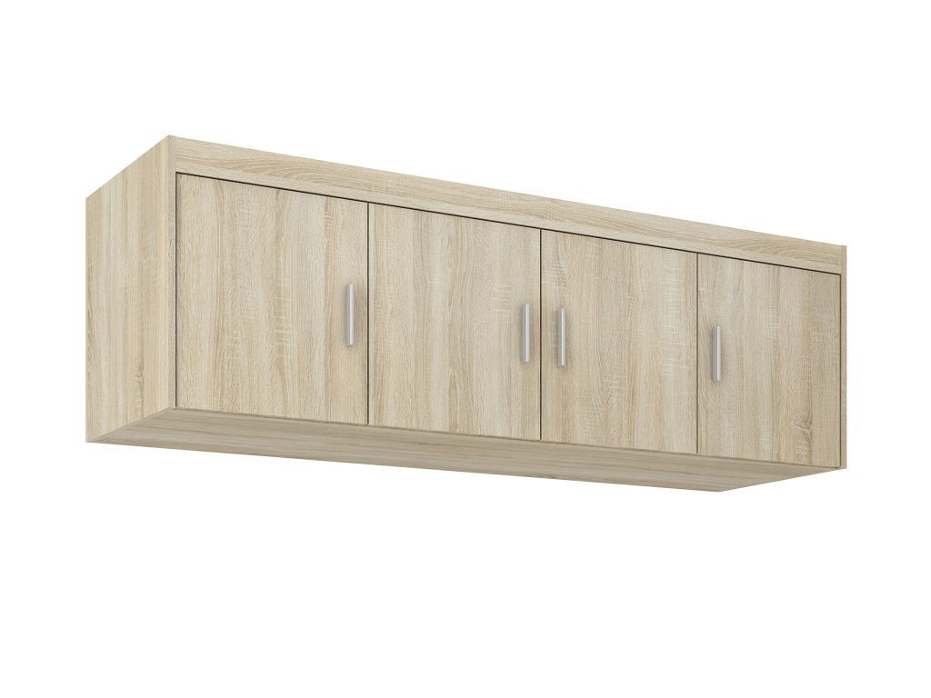 Zaobstarajte si nadstavec na skriňu Elenas 4D v dekore dub sonoma a využite každý centimeter priestoru vo vašej spálni. Nadstavec je vyrobený z kvalitnej laminovanej dosky s melamínovými hranami, čo zaručuje jeho odolnosť a dlhú životnosť. Vnútri nájdete tri praktické police, ktoré sú ideálne na usporiadanie oblečenia, sezónnych vecí alebo doplnkov. Moderné plastové úchytky striebornej farby, umožňujú pohodlné otváranie a zatváranie. Nadstavec je navrhnutý tak, aby dokonale ladil so skriňou Elenas 4D a vytvoril tak jednotný a príjemný celok.