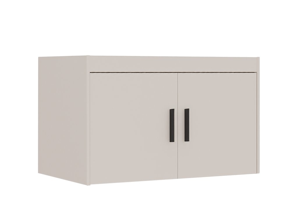 Nadstavec na dvojdverovú skriňu Elenas v pieskovom prevedení predstavuje praktický spôsob, ako jednoducho zväčšiť úložný priestor bez potreby ďalšieho nábytku. Je ideálnym riešením do spálne aj predsiene, kde pomôže efektívne využiť priestor až po strop a udržať domácnosť prehľadne usporiadanú. Skvelo poslúži na uloženie sezónneho oblečenia, posteľnej bielizne či menej používaných doplnkov. Korpus nadstavca je vyrobený z kvalitnej laminovanej dosky, ktorá v kombinácii s melamínovými hranami zabezpečuje pevnú konštrukciu, dlhú životnosť a odolnosť pri každodennom používaní. Jemný pieskový dekor pôsobí moderne, elegantne a ľahko sa kombinuje s ostatným nábytkom v interiéri. Praktické plastové úchytky umožňujú pohodlné otváranie dvierok a zvyšujú komfort pri používaní.