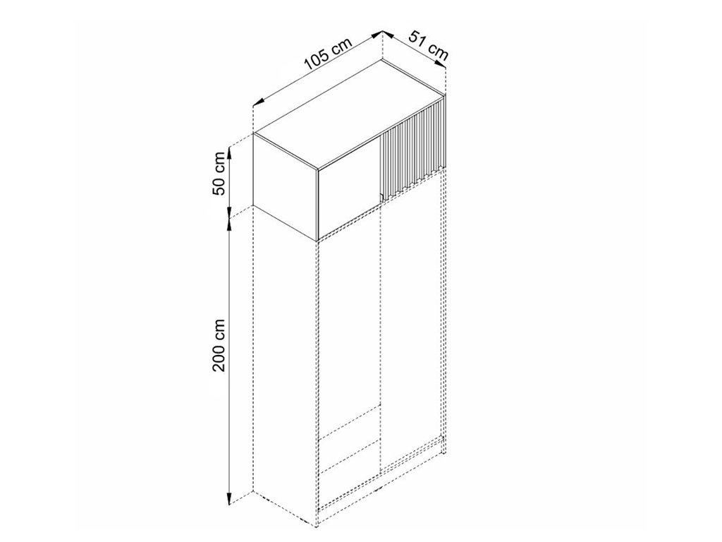 Potrebujete viac úložného priestoru? Máme pre vás skvelé riešenie. Nadstavec na dvojdverovú šatníkovú skriňu Nelly 2D je vyrobený z kvalitnej laminovanej dosky s hrúbkou 16 mm, ktorá je zakončená ABS hranami. Úchytky sú z plastu v čiernej farbe. Moderný vzhľad dotvárajú dizajnové dekoračné lamely vo farbe dub artisan.