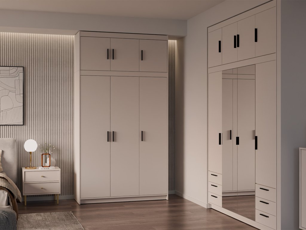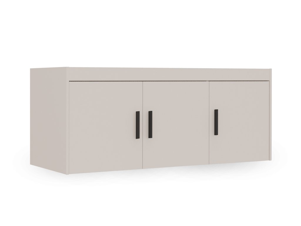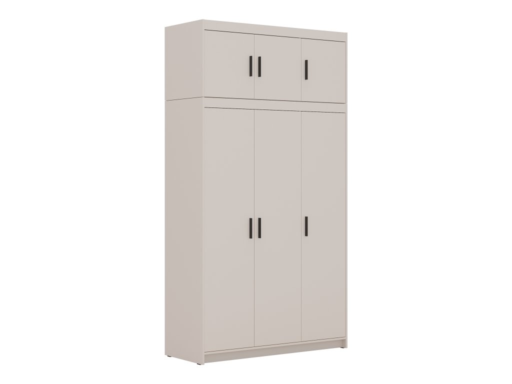 Získajte viac priestoru a upravenú spálňu s trojdverovým nadstavcom na skriňu Elenas 3D v modernom pieskovom prevedení. Tento štýlový nadstavec nielen doplní interiér, ale predovšetkým vám poskytne praktické riešenie na usporiadanie oblečenia, doplnkov a sezónnych vecí, ktoré nechcete mať na očiach. Je vyrobený z odolnej laminovanej dosky s melamínovými hranami, čo zaručuje dlhú životnosť a pevnosť konštrukcie. Čierne plastové úchytky umožňujú jednoduché a pohodlné otváranie dvierok, takže každodenné používanie je rýchle a komfortné. Doprajte si viac poriadku, priestoru a štýlu vo vašej spálni, študentskej izbe alebo predsieni s týmto praktickým a elegantným nadstavcom.