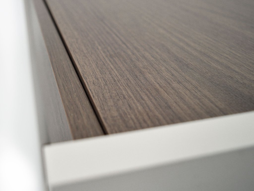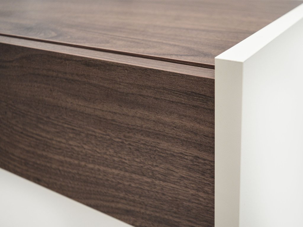 - Materiál: laminovaná doska LTD 16 mm, ABS hrany, tvrdené sklo