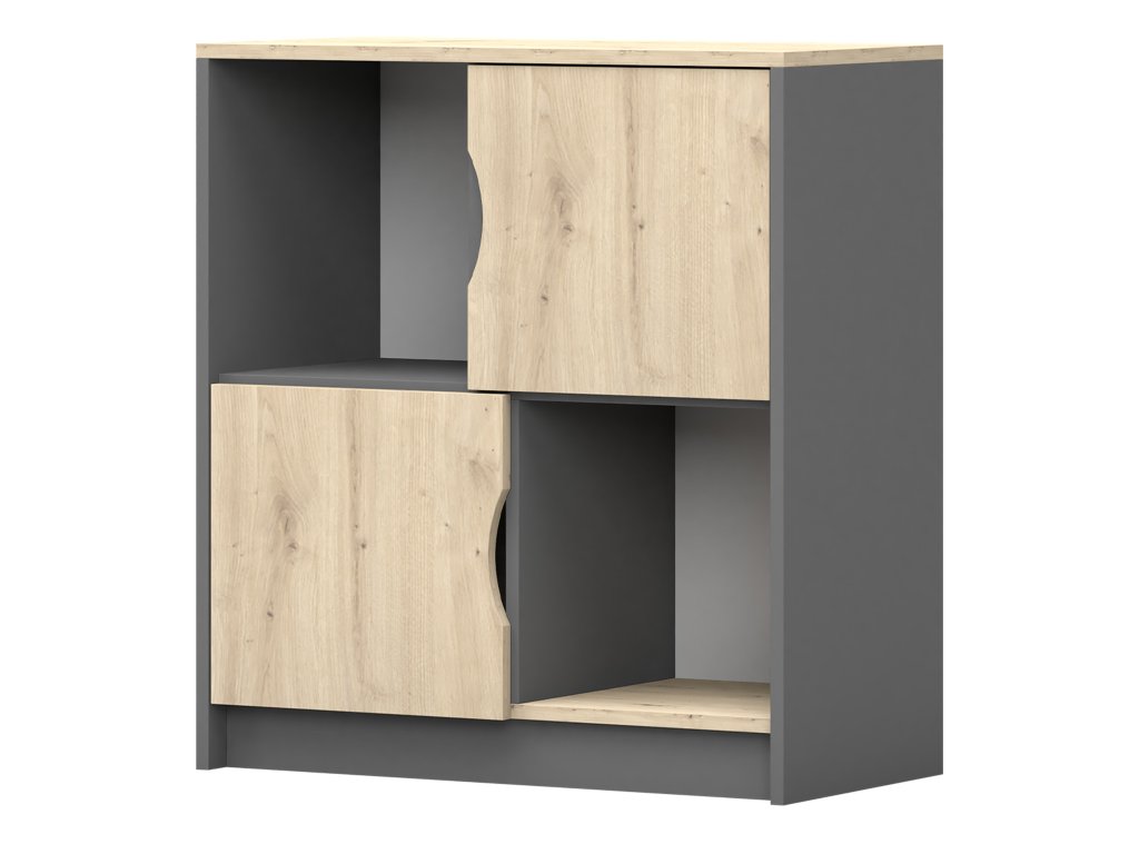 Sivá farba v kombinácii s dekorom dub artisan vnáša do regálu Joy moderný a nadčasový vzhľad, ktorý sa hodí do detských aj študentských izieb. Čisté línie a bezúchytkový dizajn zvýrazňujú jeho jednoduchý, no premyslený štýl. Vďaka kompaktným rozmerom zapadne aj do menších priestorov a ponúkne praktický úložný priestor na knihy, školské potreby či obľúbené dekorácie. Hlboké police zabezpečia poriadok a prehľad vo všetkom, čo potrebujete mať po ruke.