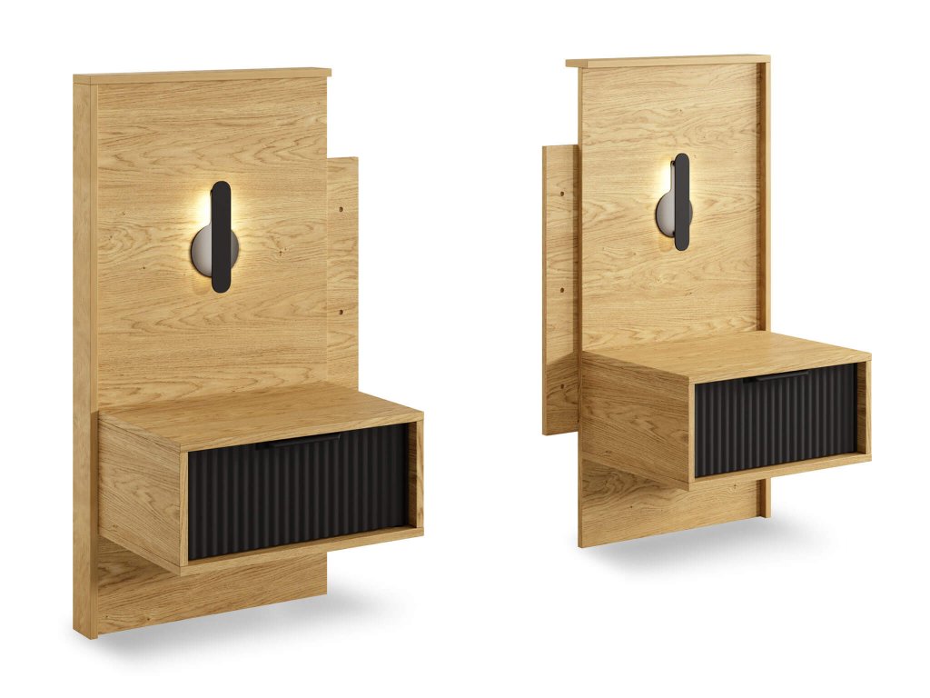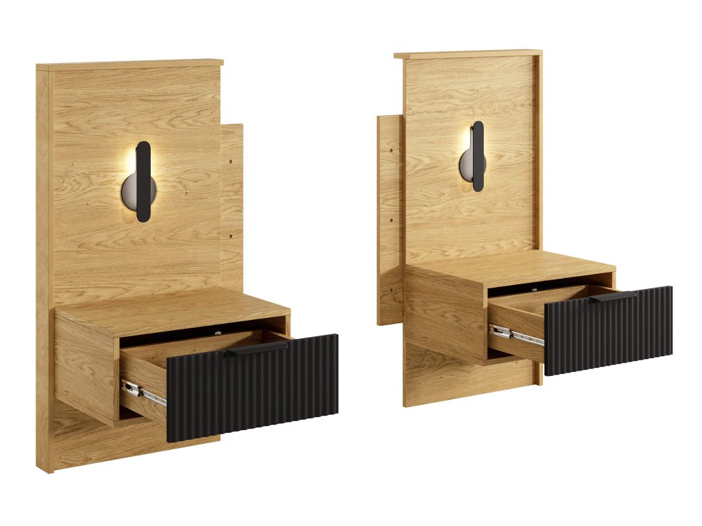 Dodajte svojej spálni nádych modernej elegancie s dvojicou nočných stolíkov vo farbe dubu baltického s čiernymi detailmi. Tento krásne vyrobený kúsok ponúka štýl aj funkčnosť, vďaka čomu je dokonalým doplnkom k vašej posteli Baltic. Tento nočný stolík vyrobený z prvotriednych materiálov a je navrhnutý tak, aby vydržal každodenné používanie a zároveň si zachoval svoj elegantný vzhľad. Telo je vyrobené z odolnej laminovanej drevotrieskovej dosky E05 s hrúbkou 16 mm a MDF s hrúbkou 18 mm čo zaisťuje dlhú životnosť.