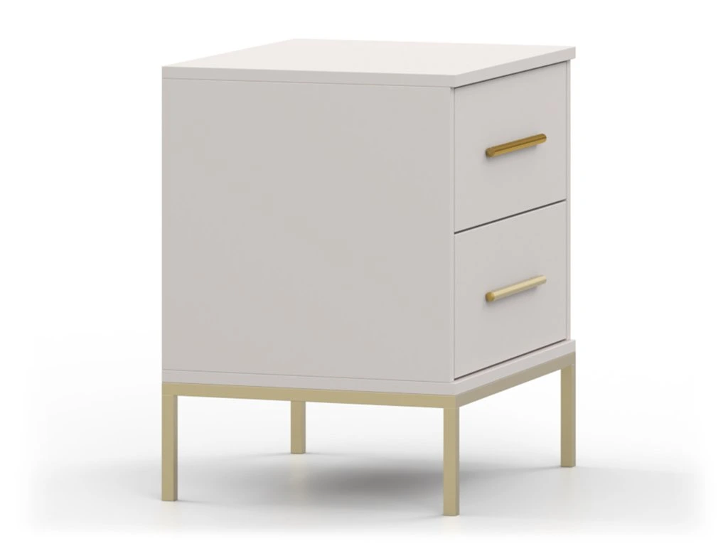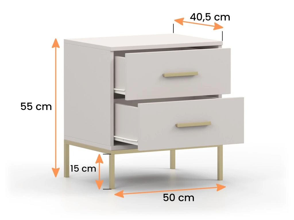 Nočný stolík Casmira je kombináciou elegantného dizajnu a praktickosti. Jeho minimalistické tvary podčiarkujú luxusný charakter, ktorý dokonale doplní moderné aj klasické interiéry. Dve priestranné zásuvky poskytujú dostatok úložného priestoru pre každodenné potreby, zatiaľ čo zlaté detaily na úchytkách a nohách dodávajú stolíku sofistikovaný nádych. Casmira je ideálnym riešením pre tých, ktorí hľadajú štýlový a zároveň funkčný doplnok spálne, ktorý spája čisté línie s jemným luxusom.