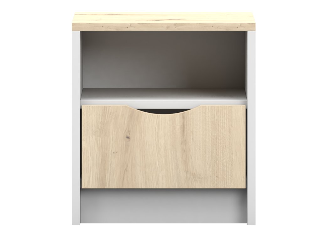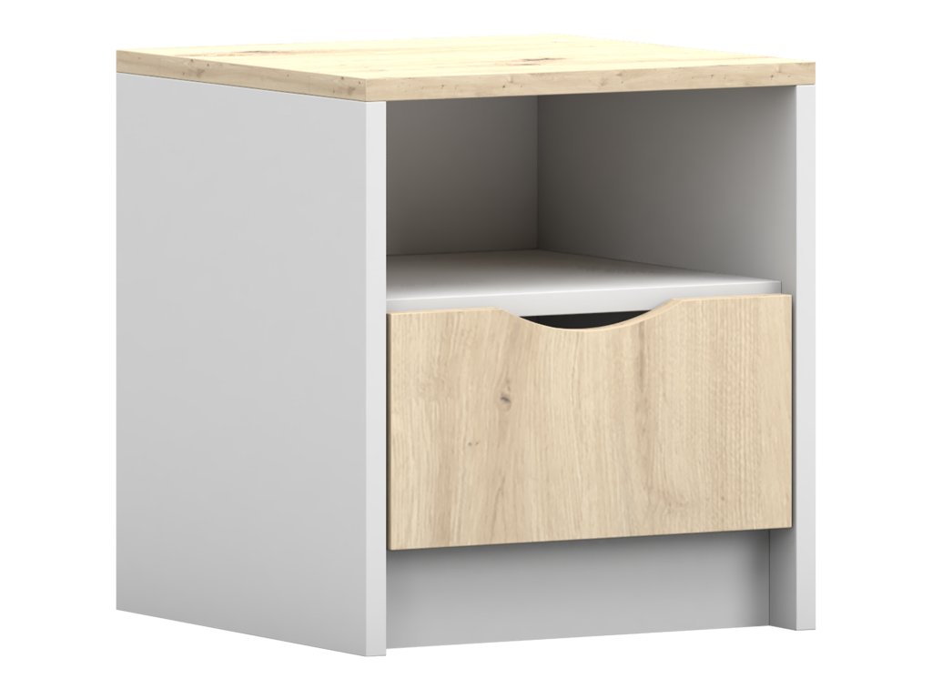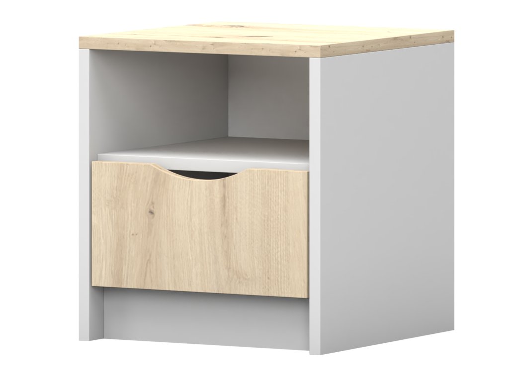 Nočný stolík Joy je praktickým doplnkom do modernej spálne alebo detskej izby, ktorý kombinuje jednoduchý dizajn s dôrazom na funkčnosť. Jeho bezúchytkový systém podčiarkuje čisté línie a minimalistický vzhľad. Hlboká zásuvka a otvorená polica nad ňou ponúkajú dostatok priestoru na uloženie všetkého, čo potrebujete mať poruke – od knihy až po nabíjačku.