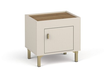 Horná doska je ideálna na umiestnenie lampy, knihy alebo budíka či mobilu pred spaním. Jej ohraničenie môže zachrániť tieto veci pred náhodným skĺznutím. Stolík je vybavený dvierkami s jedinečným vrúbkovaným dizajnom. Tieto dvierka ukrývajú praktický úložný priestor pre všetky veci ktoré chcete mať po ruke keď ste v posteli, ale nie nutne na očiach. Stolík stojí na štyroch robustných nožičkách, ktoré mu dodávajú stabilitu a zároveň uľahčujú upratovanie pod ním. Tento nočný stolík je ideálny pre tých, ktorí hľadajú štýlový doplnok do interiéru spálne s dostatočným úložným priestorom. Mossa dokonale zapadne do moderných i tradičných interiérov, kde svojím dizajnom okamžite zaujme.