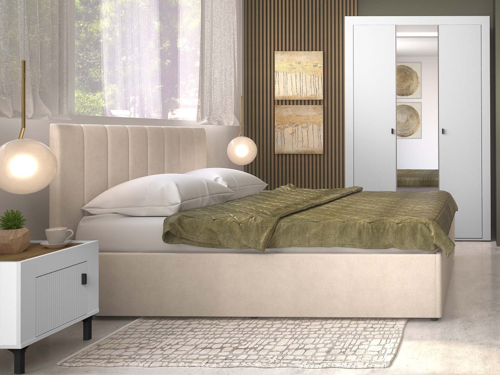 Manželská čalúnená posteľ Mossa ulahodí vášmu oku a poskytne vám nielen pohodlný spánok ale aj praktický úložný priestor
