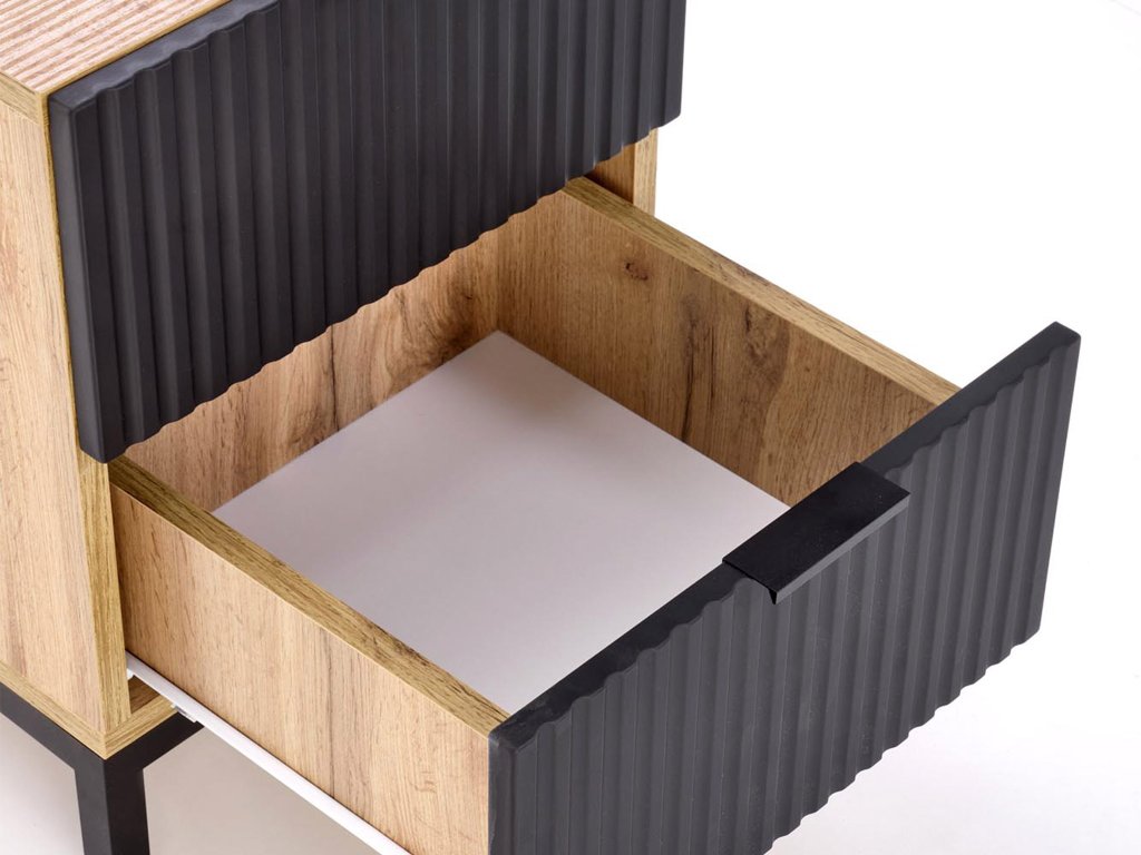 Elegantný nočný stolík Nela prinesie do vašej spálne moderný a nadčasový vzhľad. Je vyrobený z kvalitných materiálov, ako sú MDF doska, laminovaná doska, čo mu dodáva originálny a sofistikovaný charakter. Korpus stolíka v prírodnej farbe dub craft ľahko zapadne do rôznych interiérových štýlov a jednoducho ho skombinujete s ostatným nábytkom, ako sú komody či postele. Pevné nožičky z kovu zaručujú stabilitu a dlhodobú trvácnosť. Jedinečné vertikálne drážky dodávajú eleganciu a vytvárajú moderný akcent, ktorý dokonale ladí s minimalistickým interiérom.