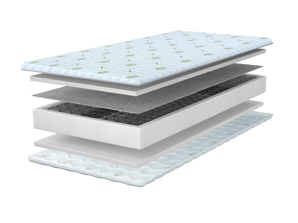 Materiálové zloženie: Polyuretánová pena T25, filc, bonellové pružiny, poťah Aloe Vera
