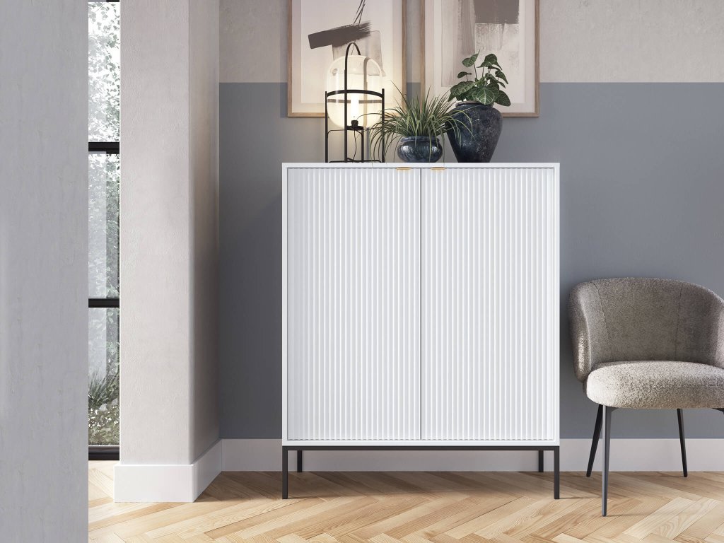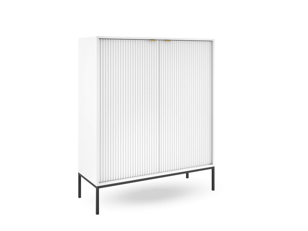 Nesmierne elegantná a štýlová kolekcia NOVA nesmie chýbať v žiadnom interiéri milovníkov moderného dizajnu. Ozdobné drážkované predné časti nábytku sa nádherne dopĺňajú s brúsenými zlatými úchytkami z hliníku. Ľahkosť nábytku dodáva čierna kovová konštrukcia s vysokými nožičkami. S kolekciou Nova si vyskladáte modernú obývačku, avšak niektoré kúsky môžete umiestniť aj do predsiene, jedálne či spálne. Korpus nábytku je tvorený laminovanou DTD doskou, kým drážkované čelá nábytku tvorí kvalitná MDF doska.