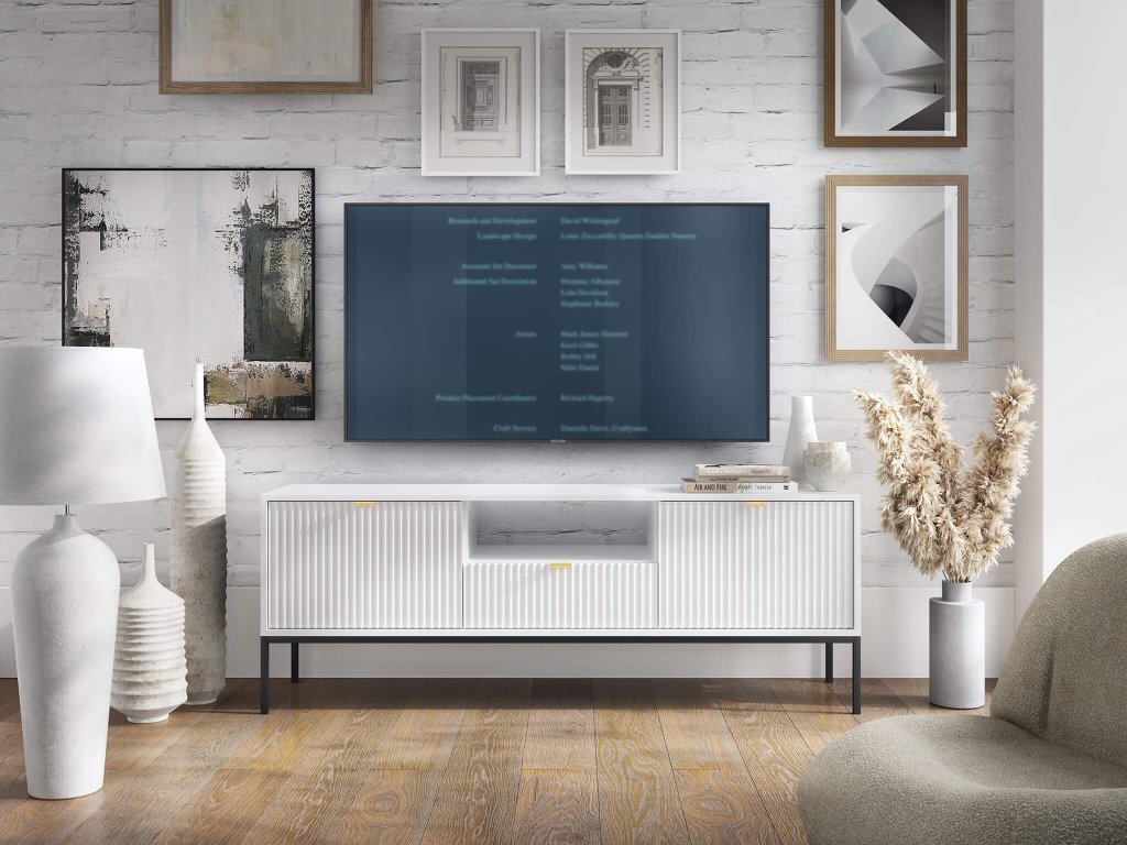 - Priestranný TV stolík Nova RTV154 disponuje otvoreným úložným priestorom, zásuvkou a dvomi postrannými skrinkami. Rozmer (šxvxh): 154 x 56 x 39 cm.