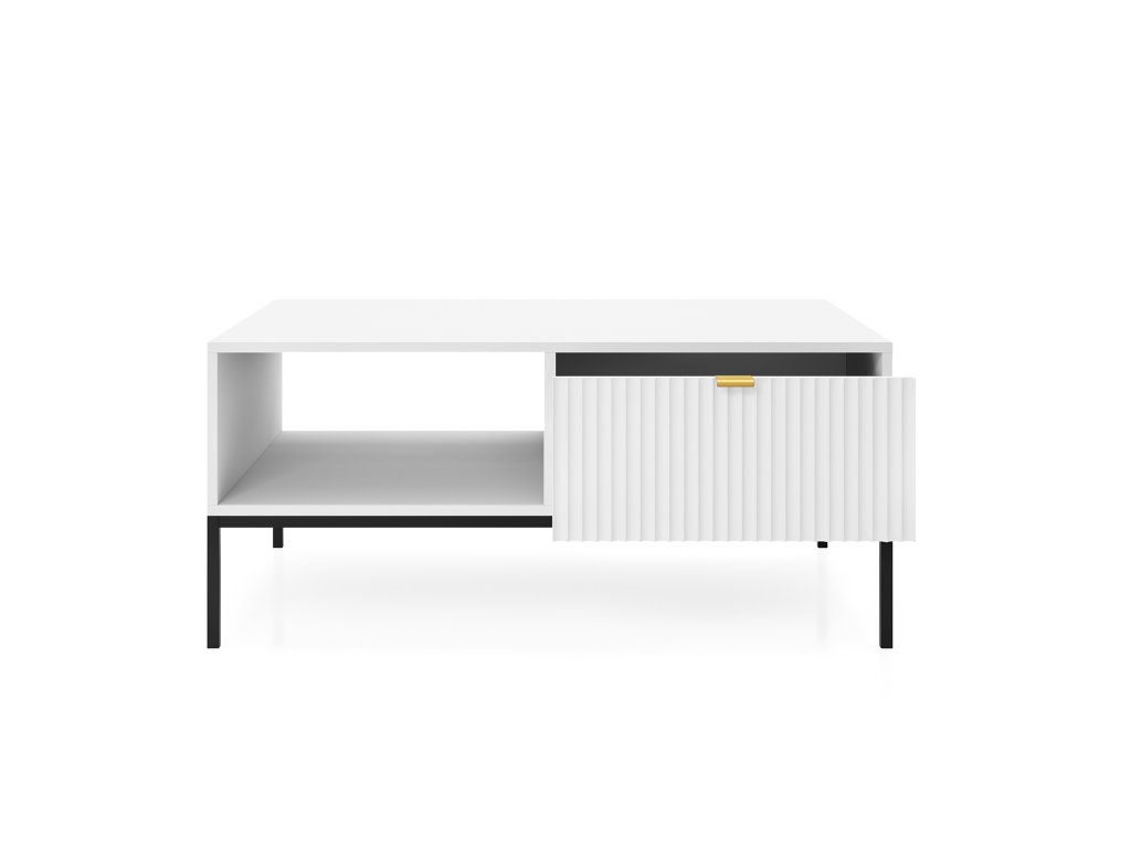 - S bielym konferenčným stolíkom Nova L104 hravo pohostíte každú návštevu, pričom každá Vaša vec si nájde svoje miesto. Pozostáva z otvoreného úložného priestoru a zásuvky. Rozmer (šxvxh): 104 x 46 x 68 cm.