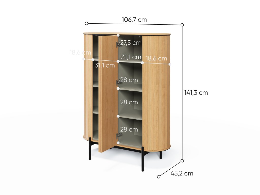 - Vysoká komoda RT-01 ponúka dostatok úložného priestoru a štýlovo doplní váš interiér Rozmer (šxvxh): 106,7 x 141,3 x 45,2 cm.