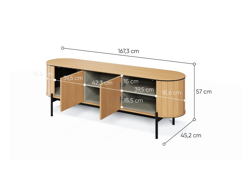 - TV stolík RT-05 zabezpečí stabilné umiestnenie televízora a ponúkne praktický priestor na uloženie techniky či príslušenstva. Rozmery (šxvxh): 167,3 x 57 x 45,2 cm